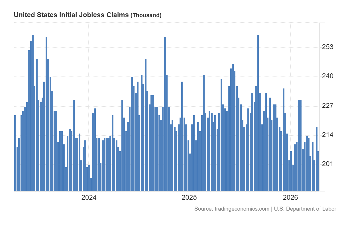 US initial jobless claims data can be viewed as a moderately positive signal for the US Tech index. The actual figure came in at 207 thousand versus a forecast of 213 thousand and a previous reading of 218 thousand, meaning new claims were below expectations and below the previous value. This indicates that the labour market remains resilient and the US economy is not showing signs of a sharp cooling. For the tech index, such a result is generally seen as rather supportive in the short term, since it reduces concerns about a rapid deterioration in business activity.