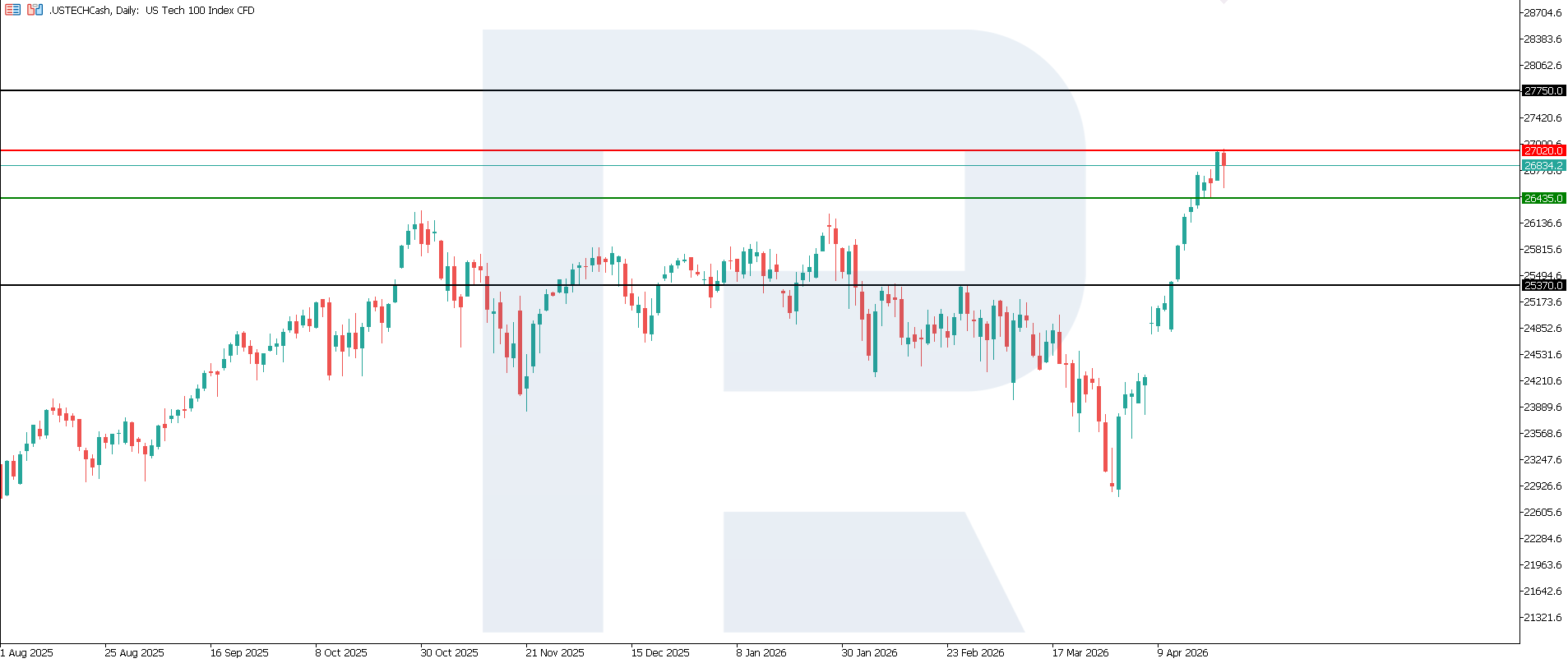 Overall, this release can be assessed as moderately positive for the US stock market and cautiously positive for the US Tech index. For the broad market, this primarily confirms the resilience of the US economy. For the technology index, the effect is more complex: a strong economy supports revenue and demand expectations, but it can also increase concerns about rates staying high. The next upside target could be 27,750.0.
