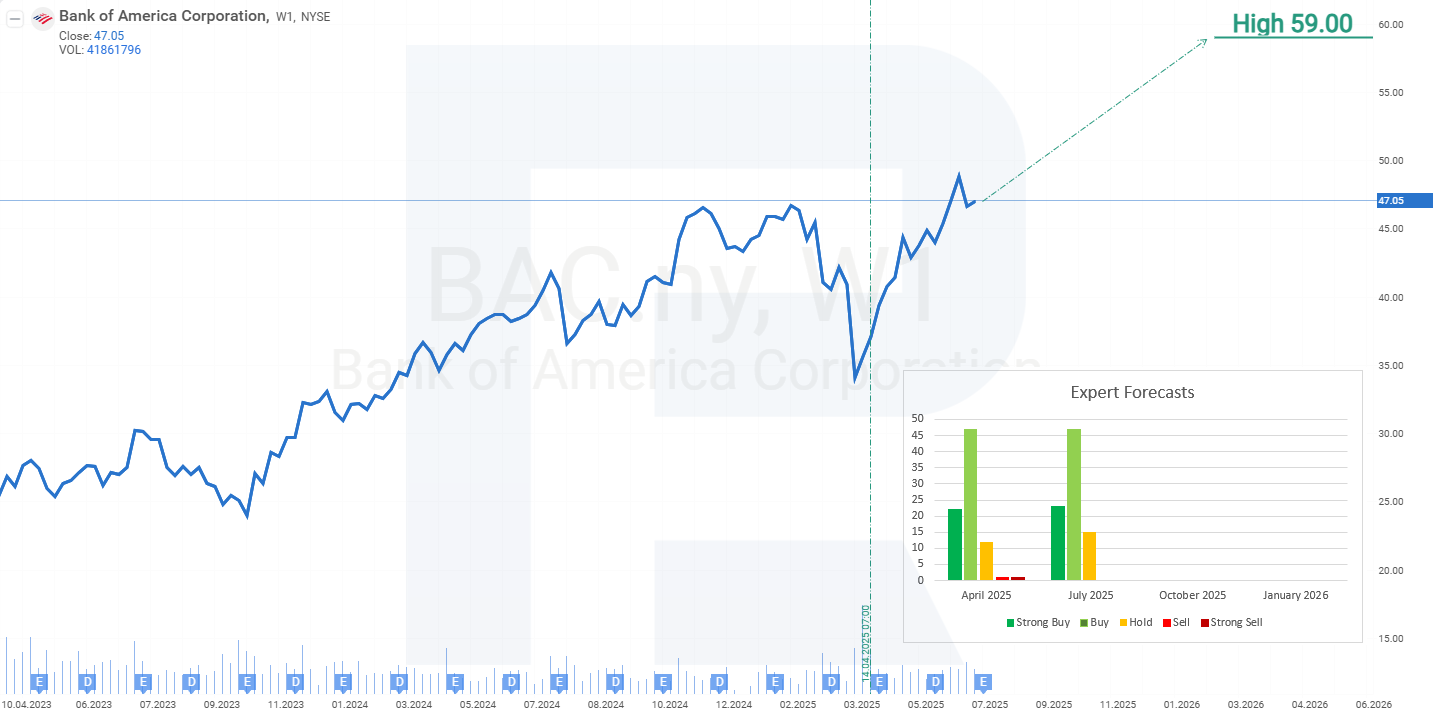 This article provides a detailed overview of Bank of America Corporation, including a fundamental analysis of Bank of America’s financial results for Q3 and Q4 2024 and Q1–Q3 2025. Based on the observed performance of Bank of America’s share price, the review also includes a technical analysis of BAC stock and presents the Bank of America stock forecast for 2025.