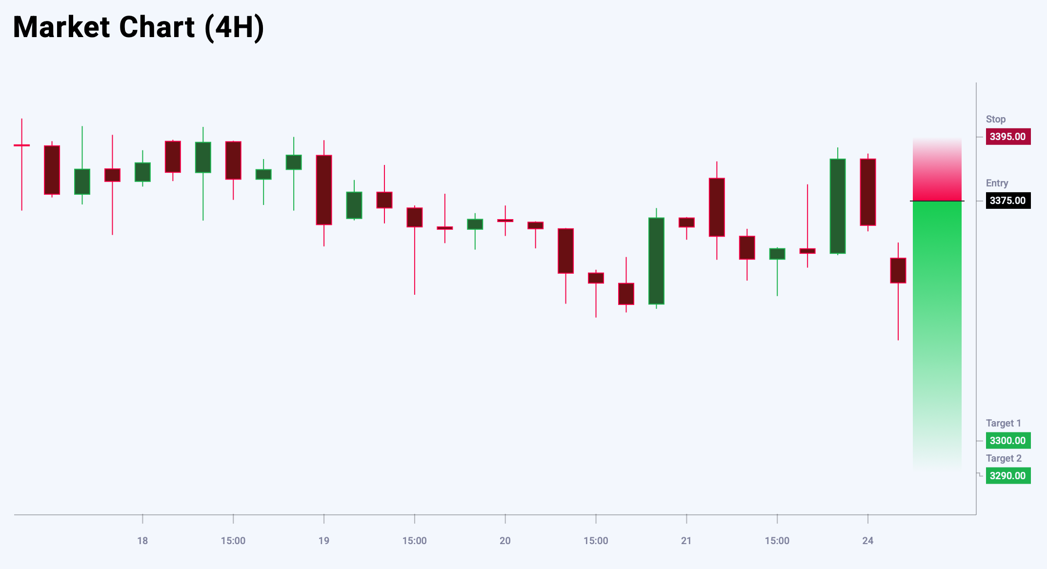 The medium-term trend for XAUUSD remains bearish. The price structure continues to form through consecutively lower highs and lows, confirming sellers' dominance. However, short positions from current levels do not offer a favourable risk-to-reward ratio. The preferred strategy is to sell on price increases. The key resistance level lies at 3,375.00. Today’s XAUUSD trade idea suggests placing a pending Sell Limit order.