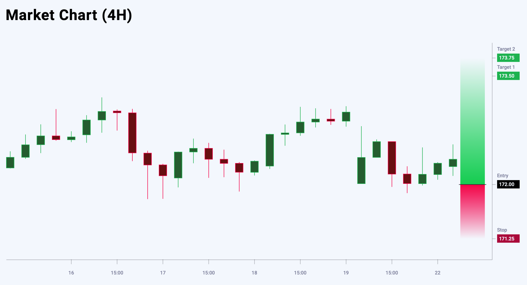The EURJPY pair continues its upward movement, with no clear signs of a reversal at this stage. Although the overall bullish trend remains in place, a corrective phase with limited downside potential may occur without threatening the broader trend. Under these conditions, entering long positions at current levels comes with an unfavourable risk-to-reward ratio. A breakout above the 173.00 level will confirm continued bullish momentum, with a target at 173.75. Today’s EURJPY trade idea suggests placing a pending Buy Limit order.