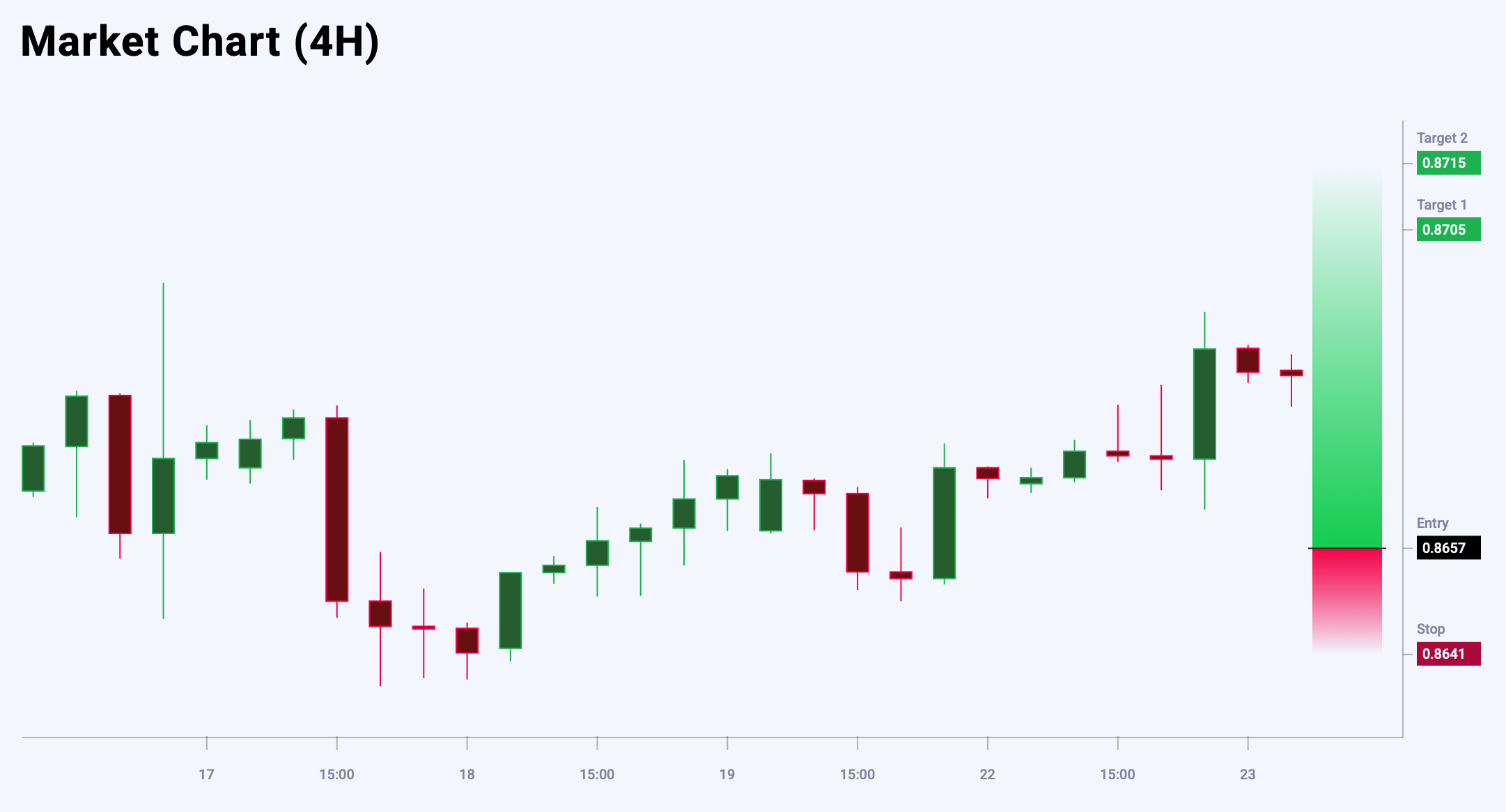 News sentiment for EURGBP shows a slight bias towards positive expectations – 55% vs 45%. The risk-to-reward ratio exceeds 1:5. Potential profit at the first take-profit level is 95 pips, at the second – 153 pips, while losses are limited to 30 pips.