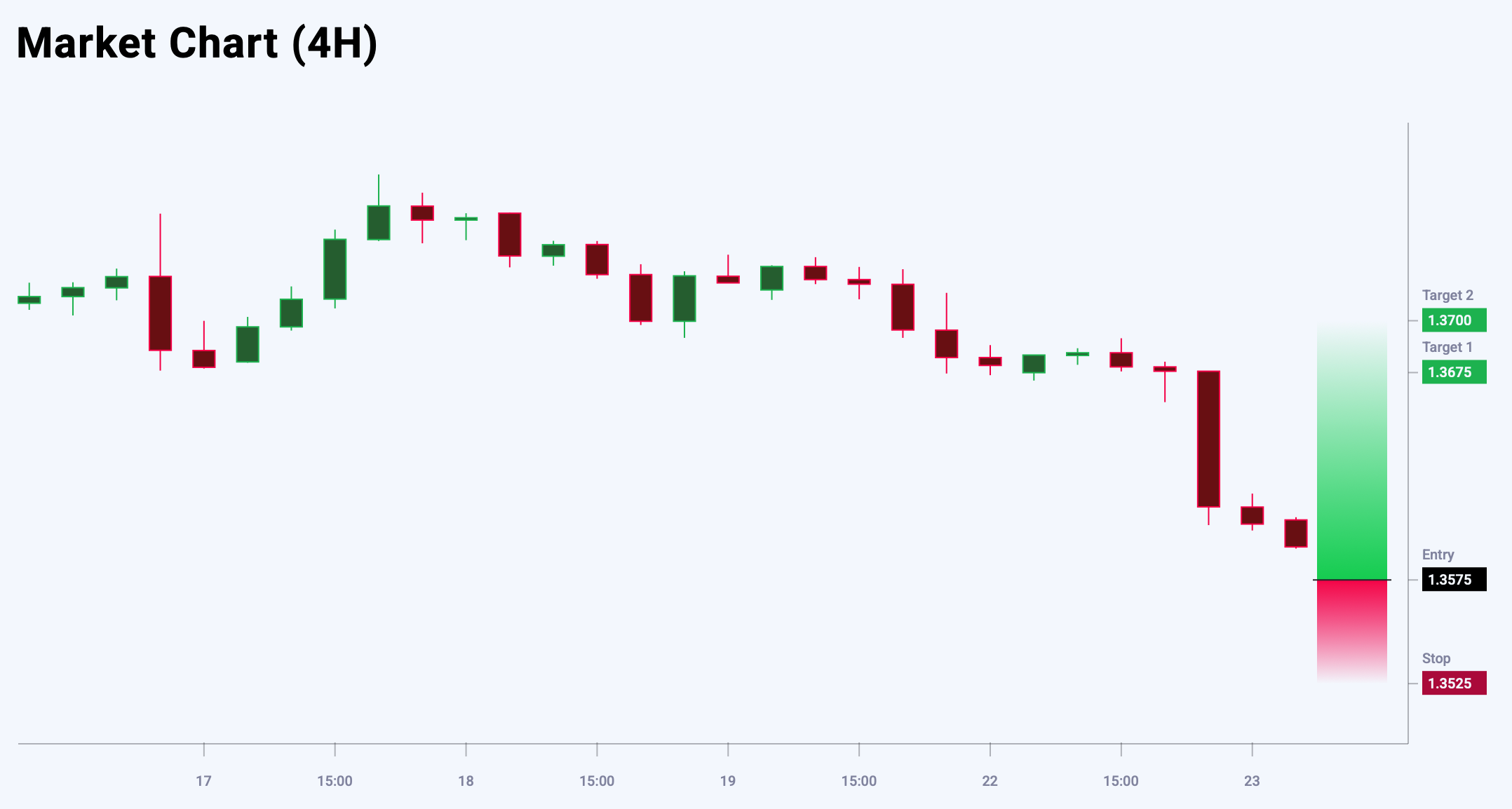 Market sentiment for USDCAD remains bearish – 60% vs 40%. The risk-to-reward ratio exceeds 1:2. Potential profit at the first take-profit level is 100 pips, at the second – 125 pips, while possible losses are limited to 50 pips.