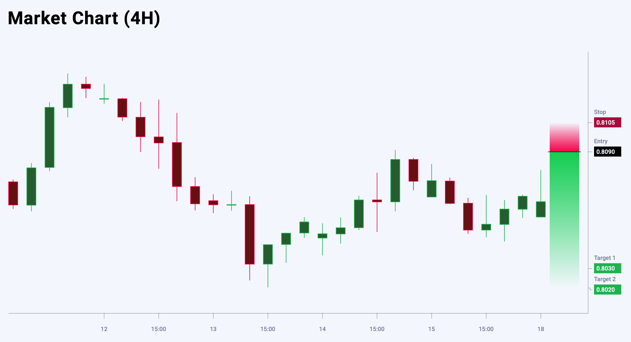 The main trend for USDCHF remains bearish, but opening short positions from current levels appears risky due to the unfavourable risk-to-reward ratio and the proximity of a strong support level at 0.8035. A temporary rebound upwards is expected, making selling on rallies the preferred strategy. The key resistance level is at 0.8090. Today’s USDCHF trade idea suggests placing a pending Sell Limit order.