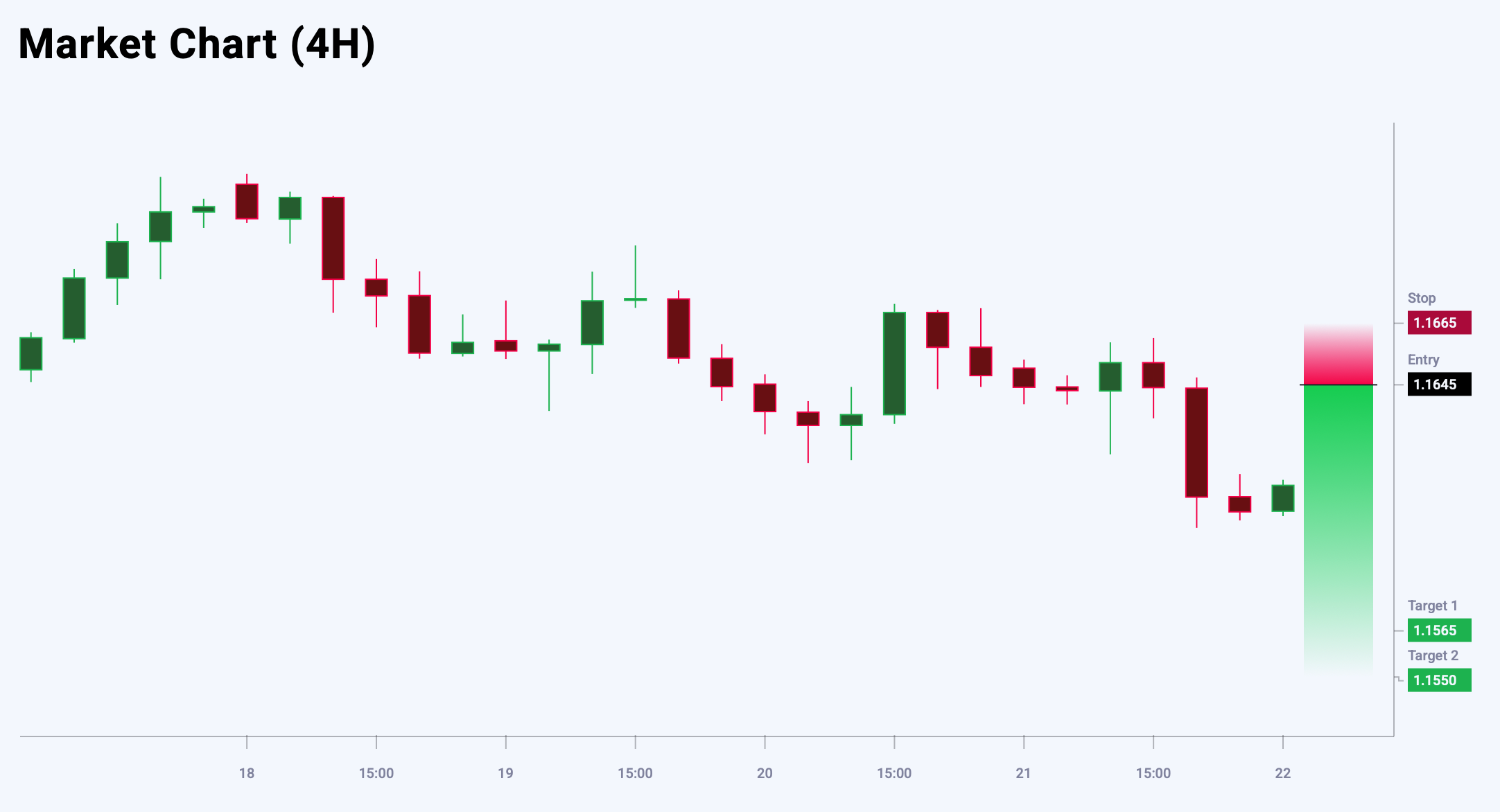 The medium-term forecast for the EURUSD pair remains bearish. Price action shows signs of forming a top, which may trigger a temporary rebound. The main strategy is to sell on upward corrections, with the key resistance level at 1.1645. Today’s EURUSD trade idea suggests placing a pending Sell Limit order.