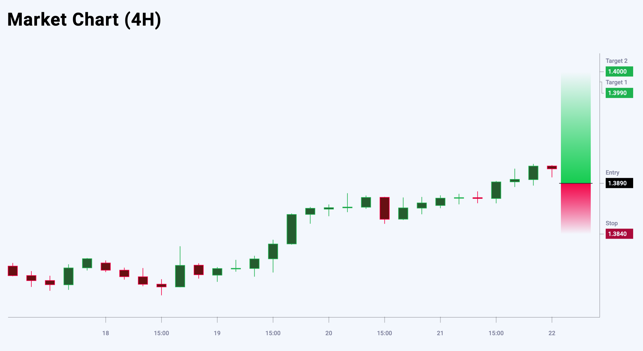 News sentiment for EURUSD shows a strong bullish bias – 59% vs 41%. The risk-to-reward ratio is 1:4. The potential profit is 80 pips at the first take-profit target and 95 pips at the second, with possible losses limited to 20 pips.