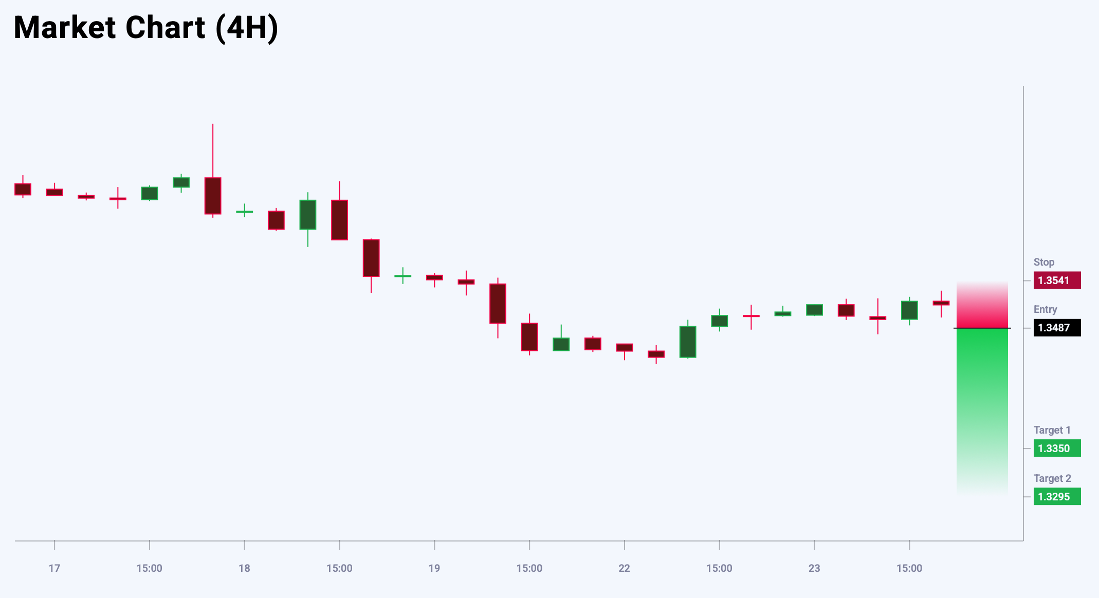 Market sentiment for GBPUSD shows a strong bearish tilt – 67% vs 33%. The risk-to-reward ratio is above 1:3. Potential profit is 126 pips at the first take-profit target and 164 pips at the second, with possible losses capped at 44 pips.
