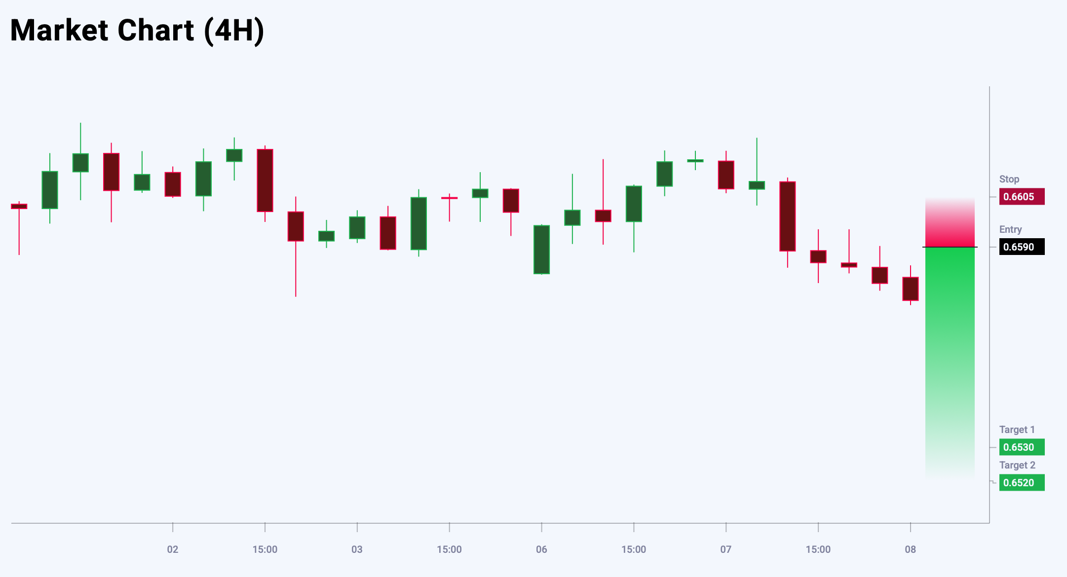 Market sentiment for AUDUSD shows a bearish bias – 53% vs 47%. The risk-to-reward ratio exceeds 1:4. Potential profit is 60 pips at the first take-profit target and 70 pips at the second, with possible losses limited to 15 pips.