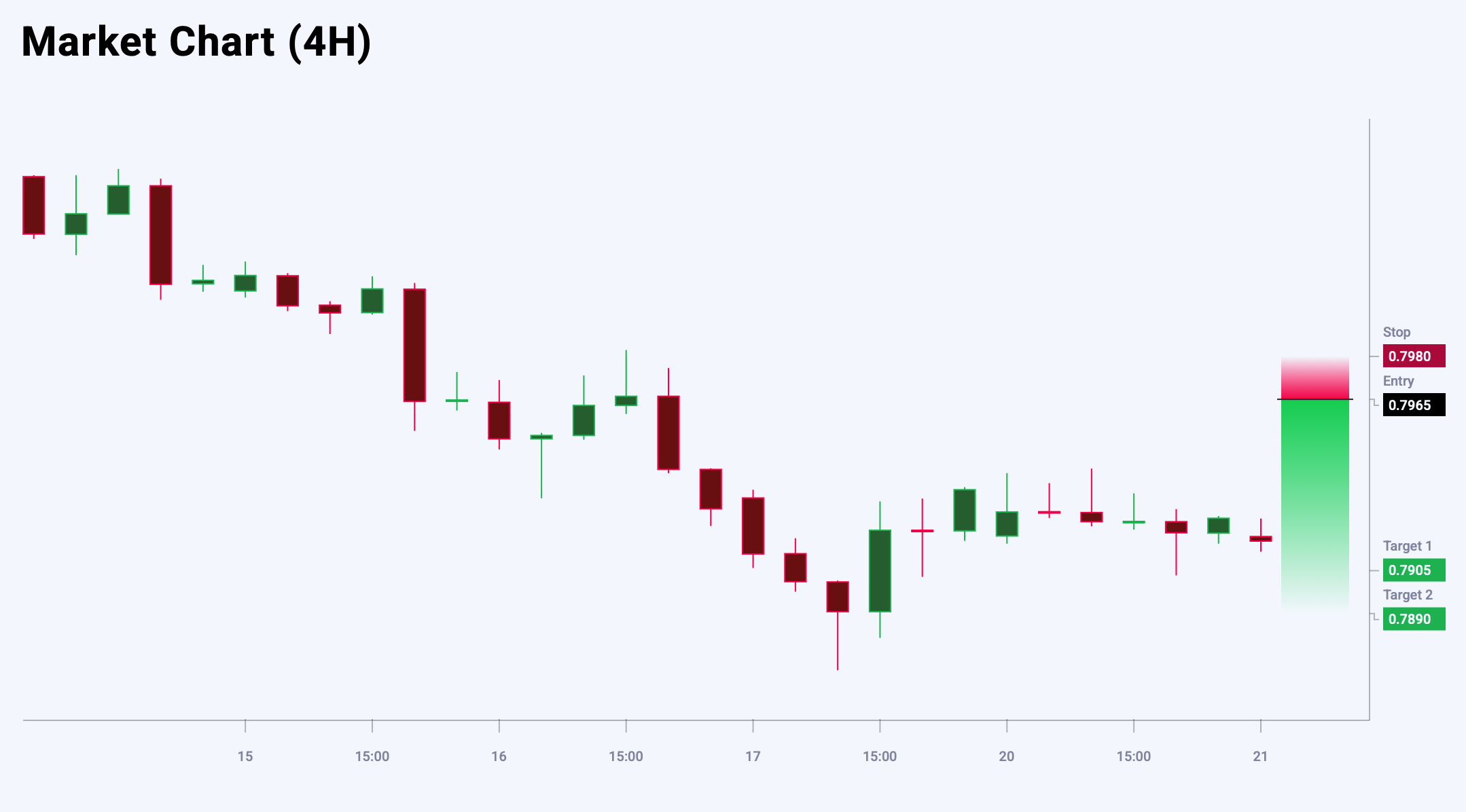 Market sentiment for USDCHF shows a bearish bias – 53% vs 47%. The risk-to-reward ratio is 1:5. Potential profit is 60 pips at the first take-profit target and 75 pips at the second, with possible losses capped at 15 pips.