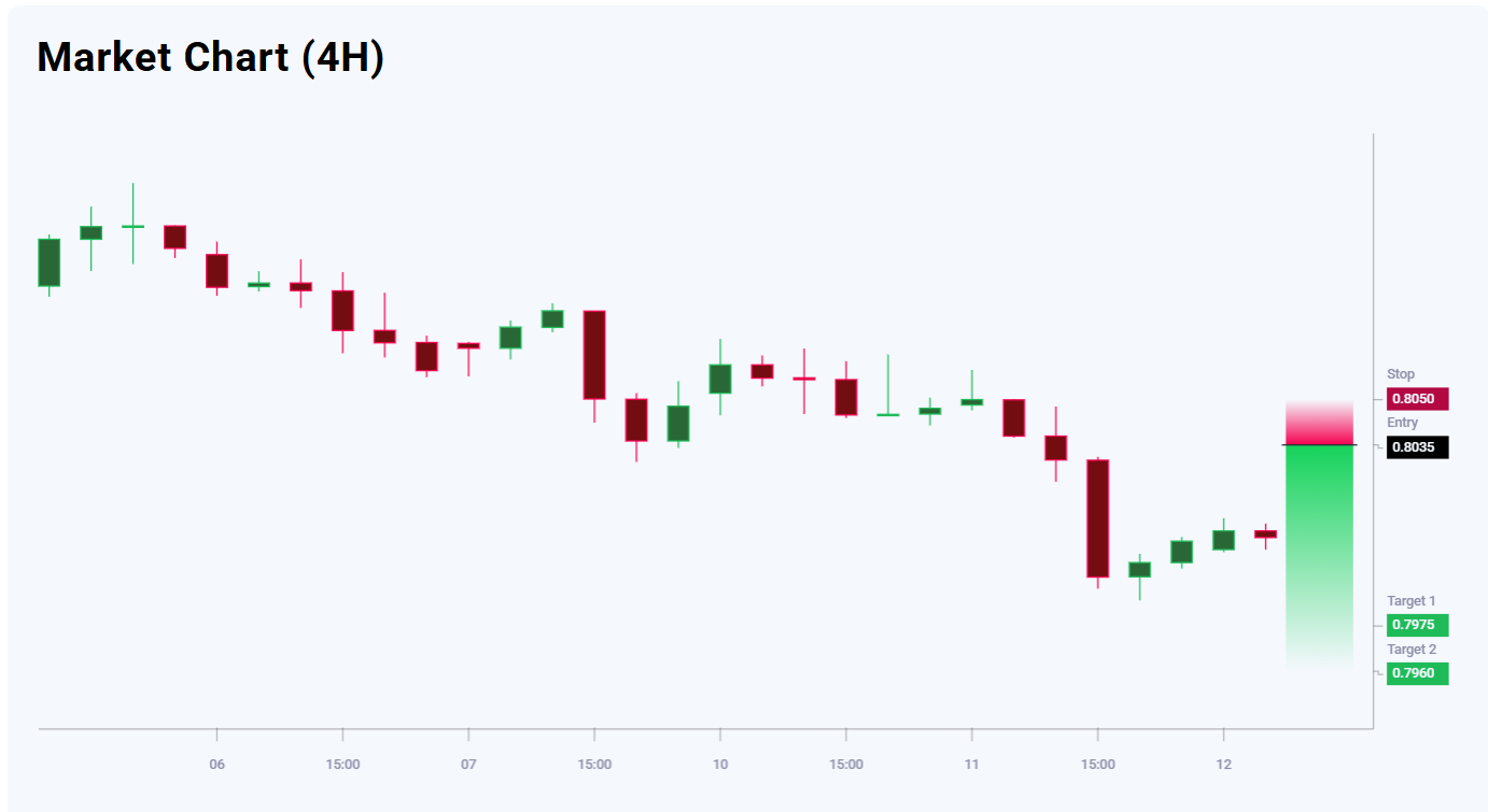 The USDCHF pair is showing unstable price dynamics, and the price action appears to be forming a top. Therefore, the preferred strategy is to sell after a correction with a tight stop-loss, anticipating that bearish momentum will resume. The key resistance level is located at 0.8035. Today’s USDCHF trade idea suggests placing a pending Sell Limit order.