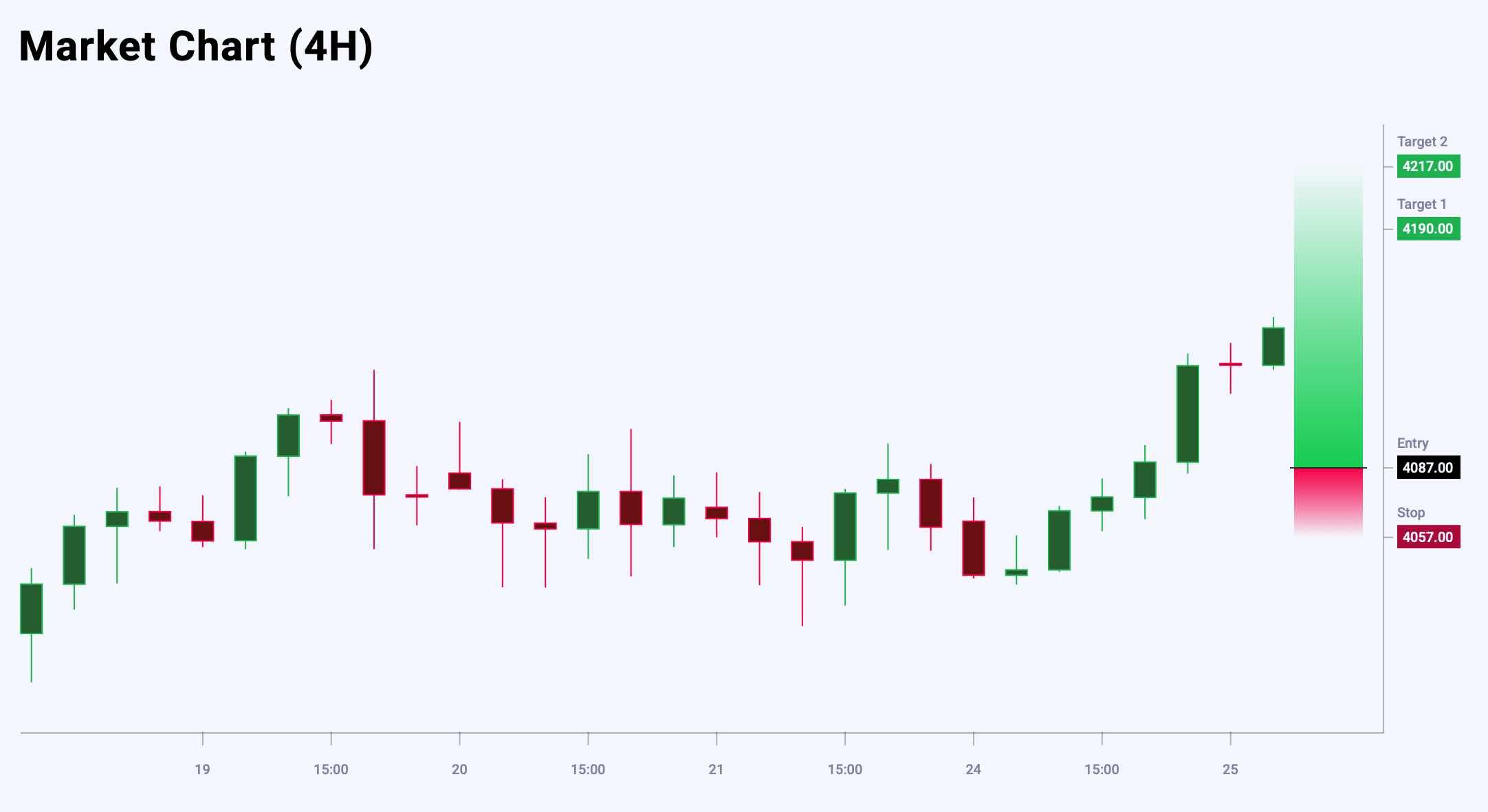 After rising from 4,040 USD, the medium-term trend for XAUUSD remains bullish, and gold demonstrated positive performance yesterday. The nearest resistance level is located at 4,143 USD. The recommended strategy is to buy on pullbacks to continue the uptrend. Today’s XAUUSD trade idea suggests placing a pending Buy Limit order.