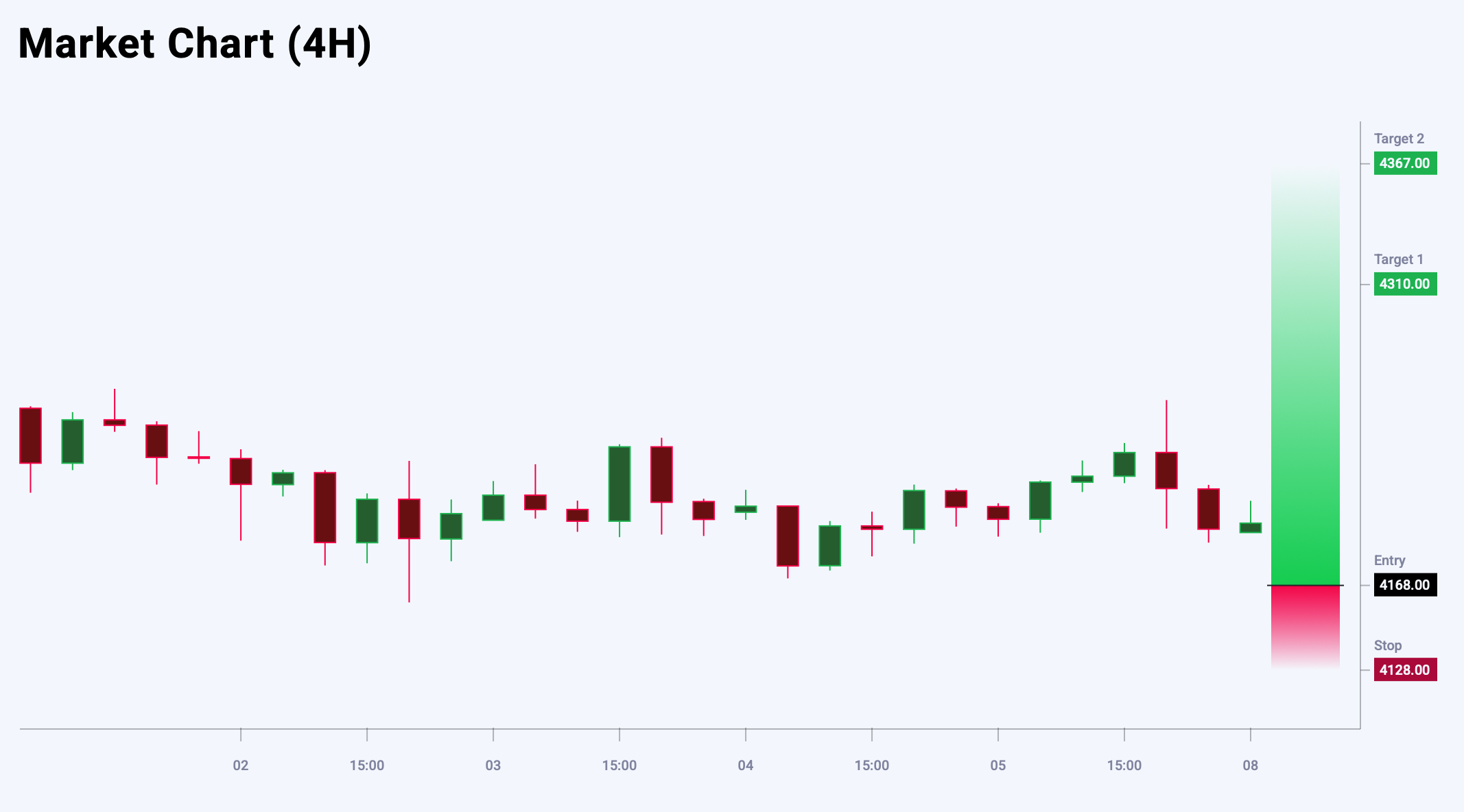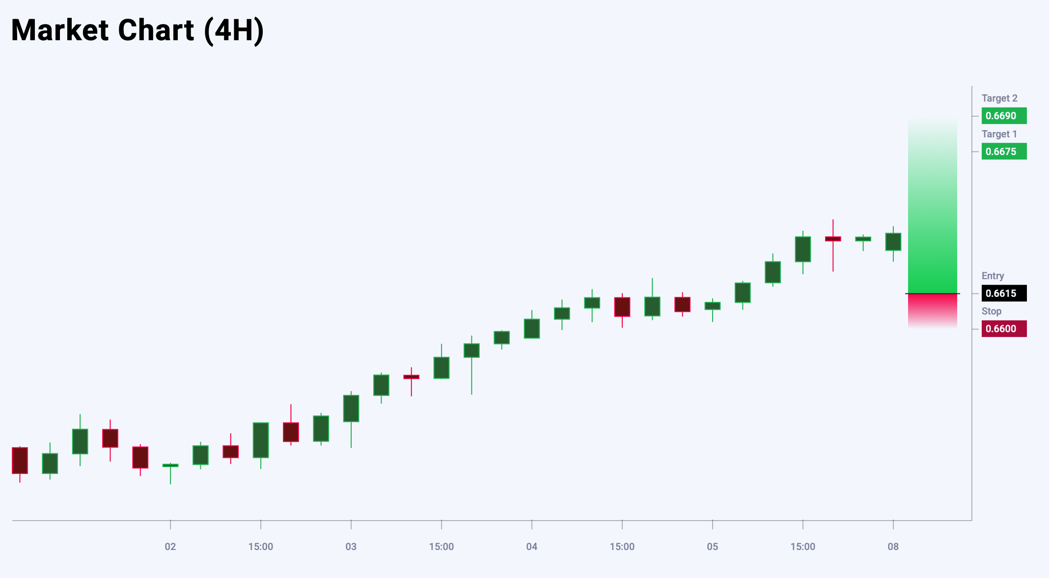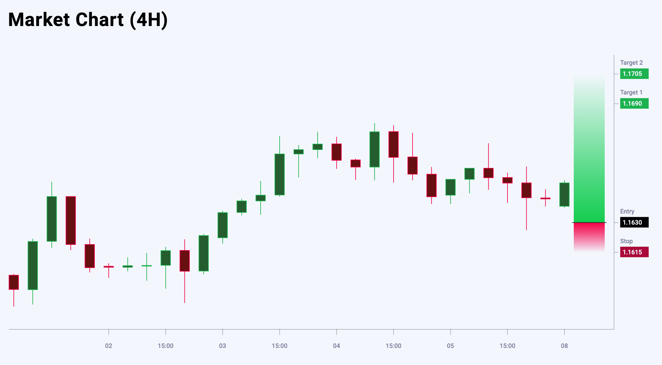 Market sentiment for EURUSD shows a bearish bias – 54% vs 46%. The risk-to-reward ratio is 1:5. Potential profit is 60 pips at the first take-profit target and 75 pips at the second, while possible losses are limited to 15 pips.