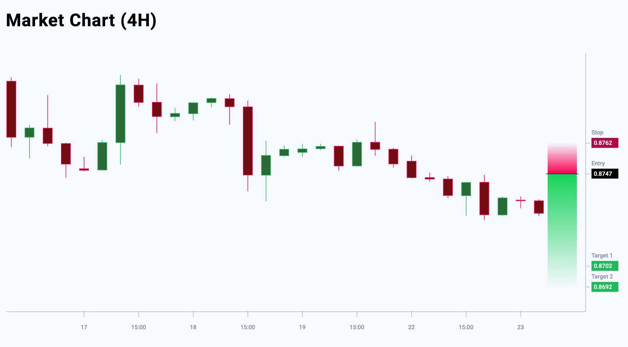 The EURGBP currency pair continues to trade within a sideways range between the key support and resistance levels of 0.8720–0.8750, and the outlook suggests the consolidation phase is likely to persist. Selling on corrective rallies appears to be the preferred strategy. Additional resistance is provided by the 20-period EMA on the H4 timeframe, which is located near 0.8747 and limits upside potential. Today’s EURGBP trade idea предполагает placing a pending Sell Limit order.