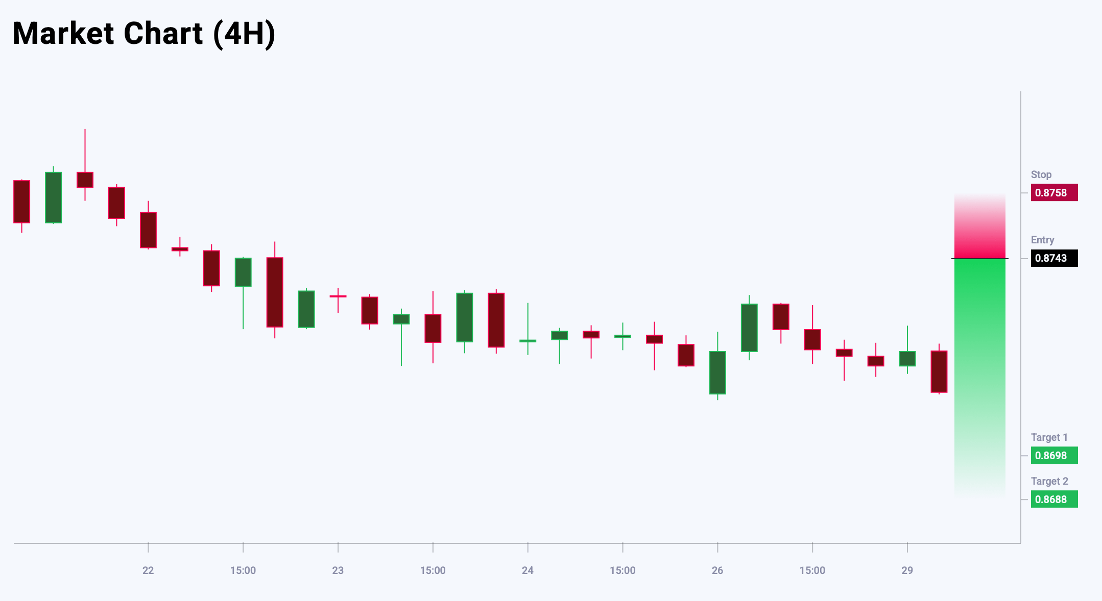Market sentiment for EURGBP shows a slight dominance of bearish expectations — 51% vs 49%.