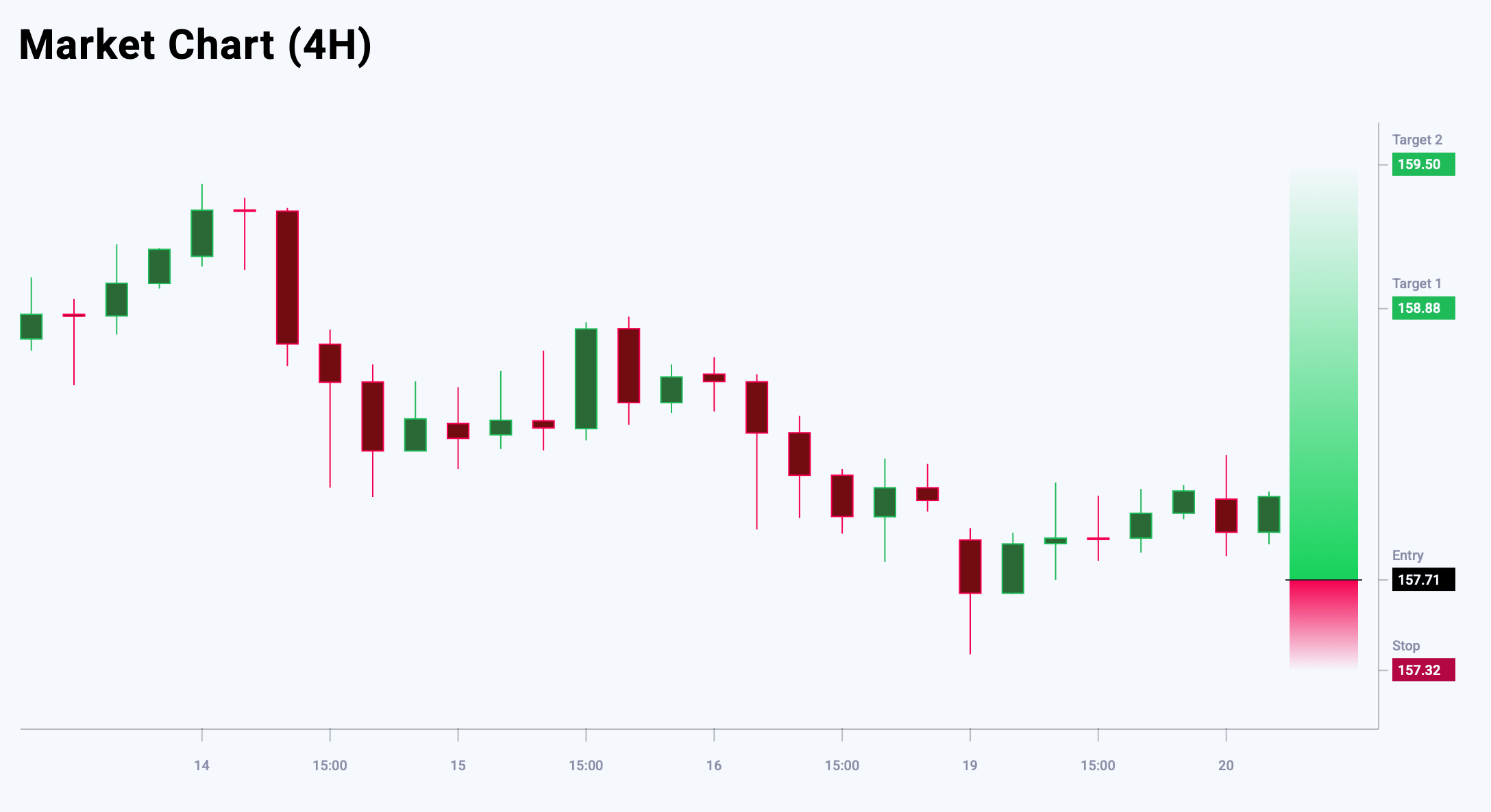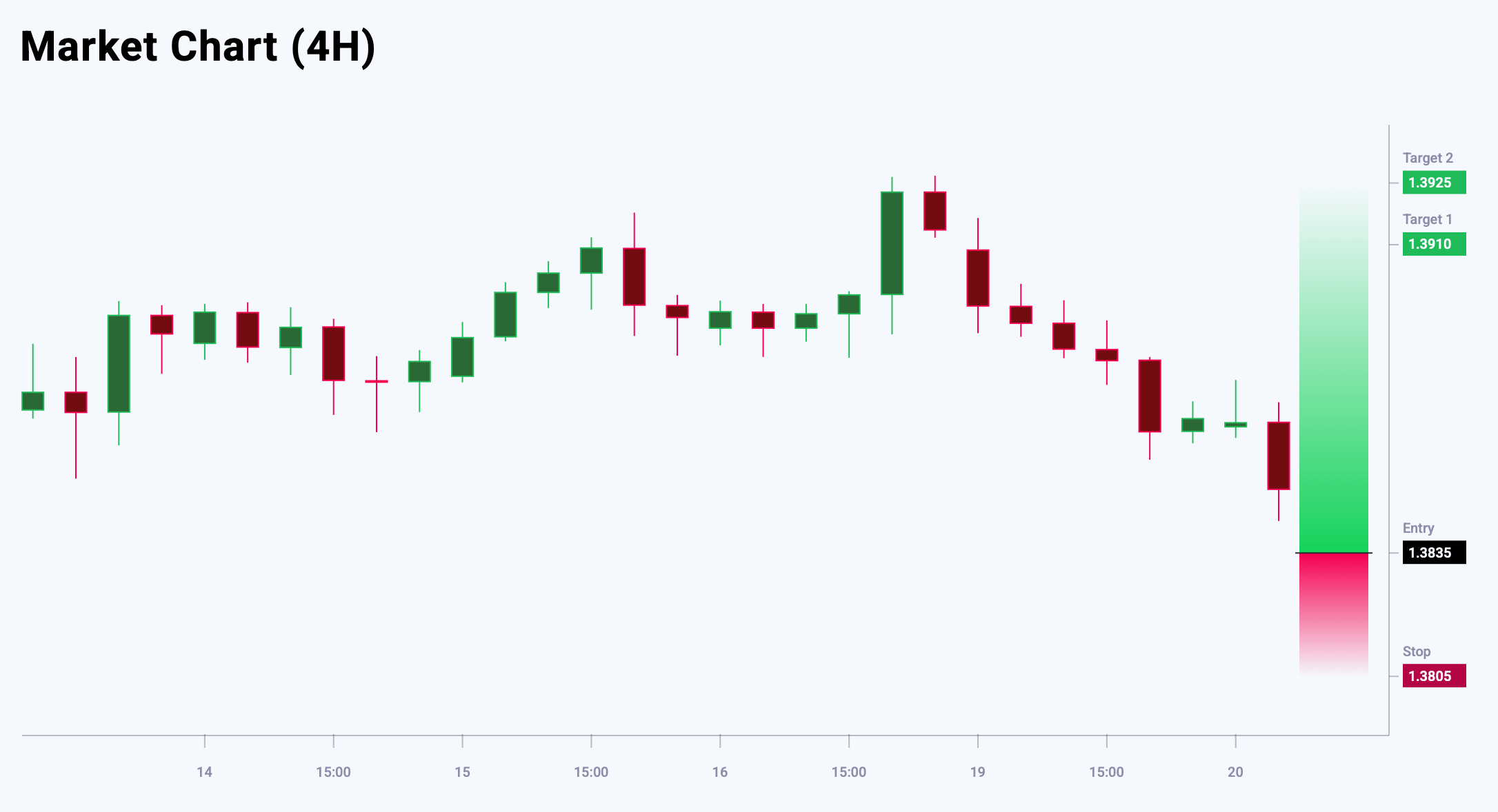 Market sentiment for USDJPY shows a bearish bias – 61% versus 39%. The risk-to-reward ratio exceeds 1:4. Potential profit is 117 pips at the first take-profit level and 179 pips at the second, with possible losses capped at 39 pips.
