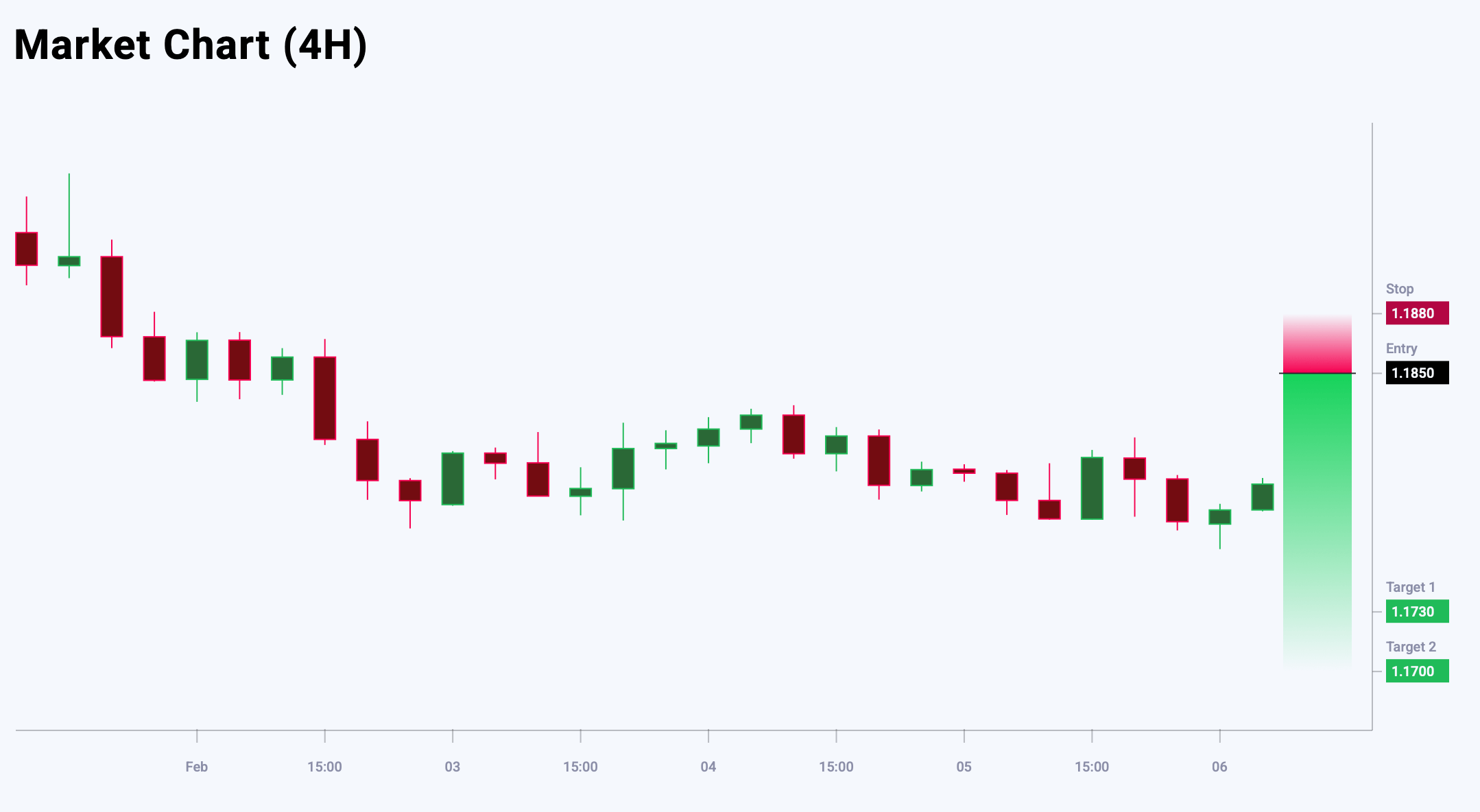 Market sentiment for EURUSD shows a strong bearish bias – 78% versus 22%. The risk-to-reward ratio is 1:4. The potential profit is 150 pips at the first take-profit level and 120 pips at the second, with possible losses capped at 30 pips.