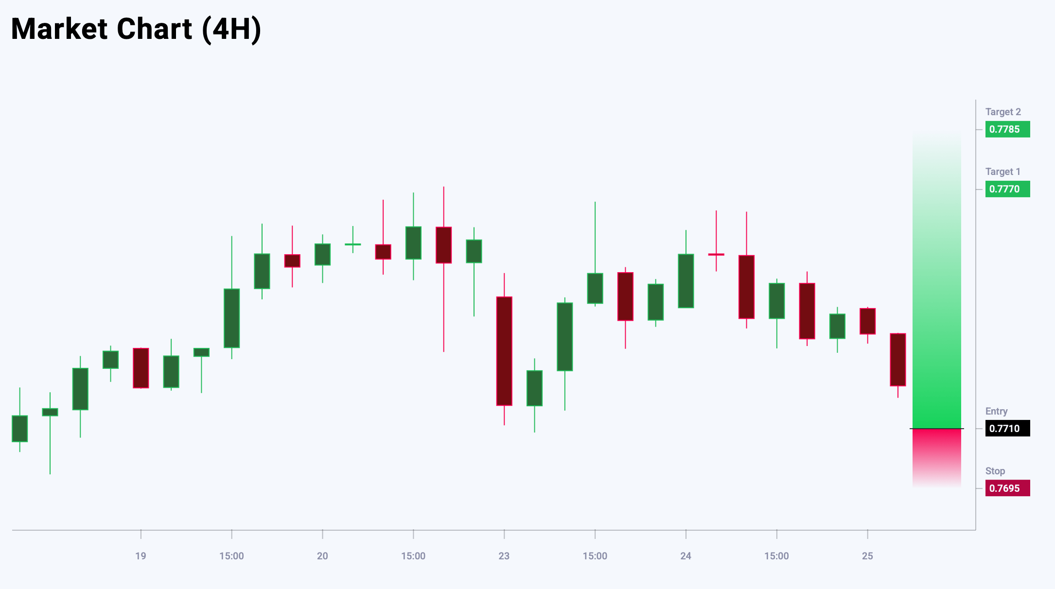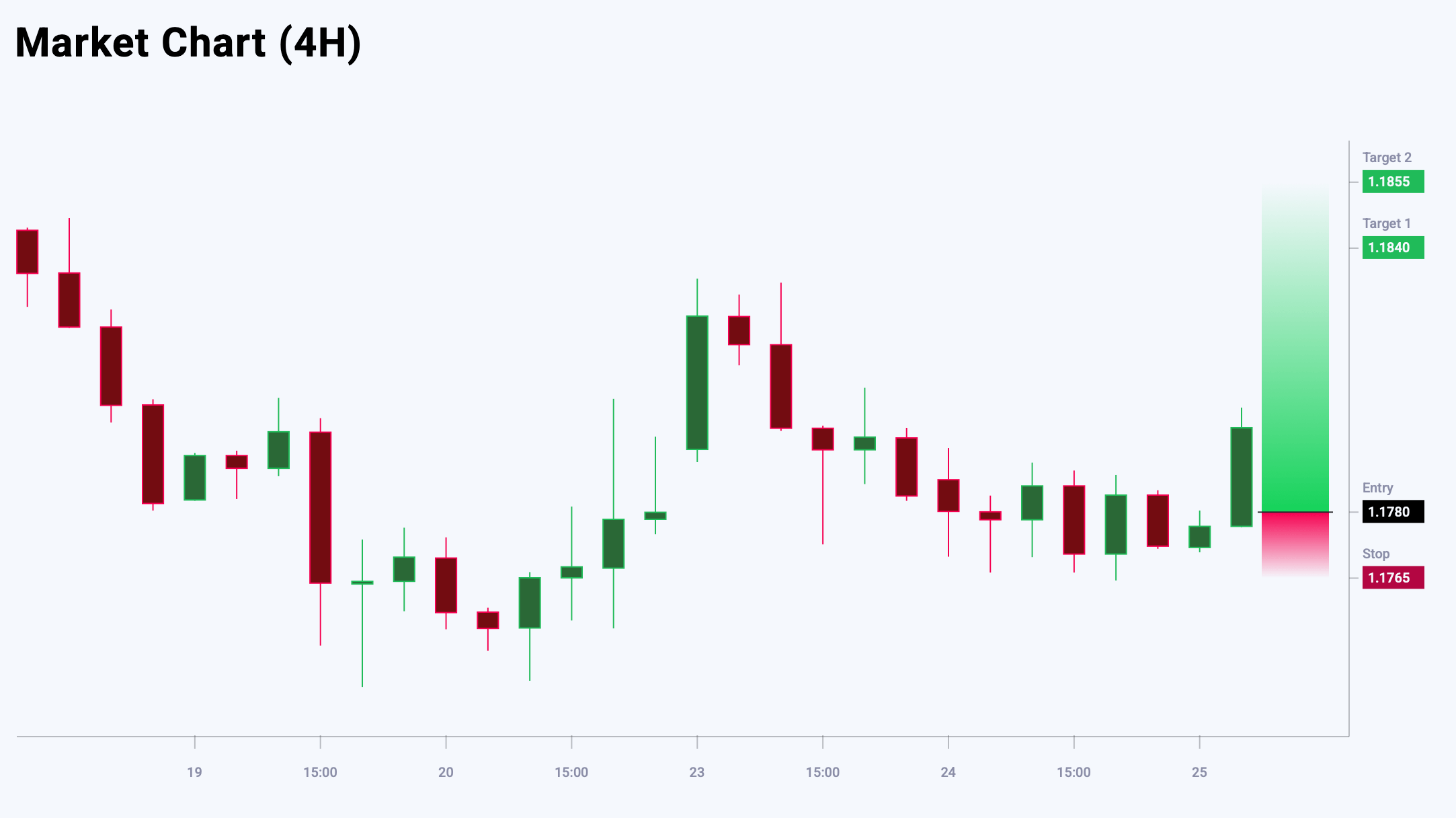 Market sentiment for EURUSD shows a bearish bias at 65% versus 35%. The risk-to-reward ratio is 1:5. The potential profit is 60 pips at the first take-profit level and 75 pips at the second, with possible losses capped at 15 pips.
