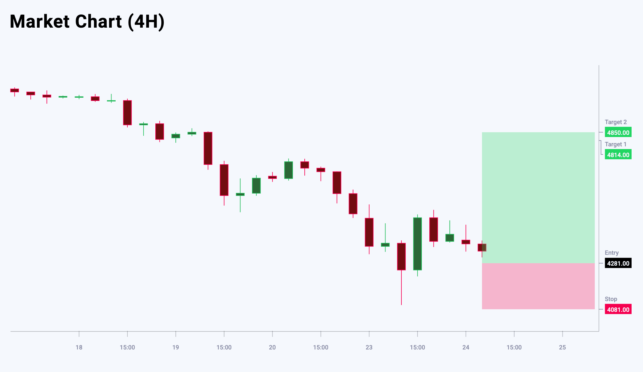 XAUUSD quotes are showing improved short-term sentiment, as a significant portion of the initial daily losses has been recovered. The overnight decline was bought up, indicating persistent buyer interest and creating prerequisites for further upward pressure during the morning session. Intraday price action is developing within a range between the support and resistance levels of 3,892–4,813 USD. Holding above the support level continues to point to upside potential in the short term. The preferred strategy is to seek long positions on pullbacks within the indicated range. The expected upward move is corrective, but it can still provide an attractive risk-to-reward profile. Today’s trading idea for XAUUSD suggests placing a pending Buy Limit order.
