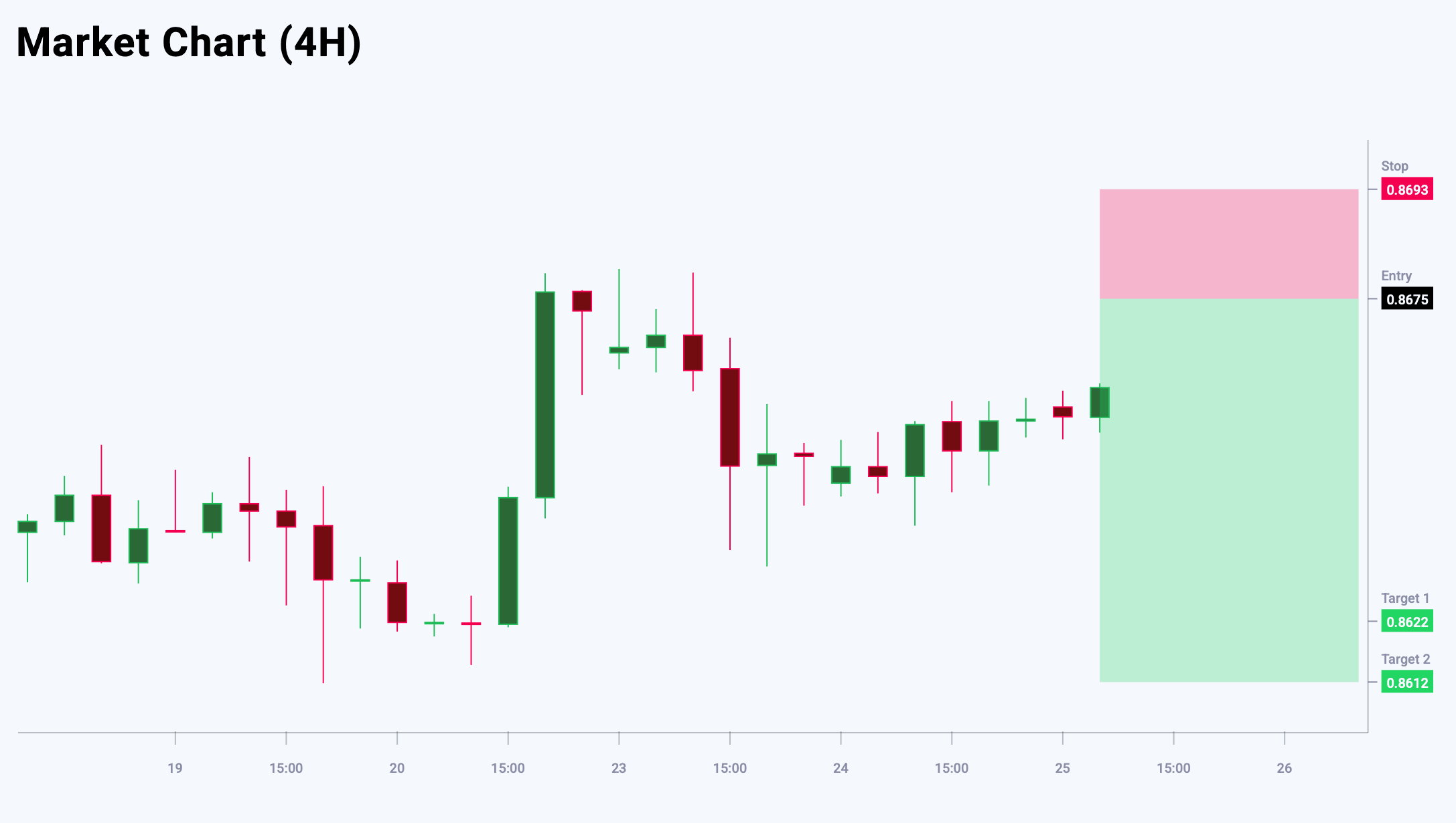 The EURGBP currency pair shows a moderately bearish bias. The formation of a Doji candlestick pattern indicates uncertainty and a possible exhaustion of the upward impulse, which increases the probability of a shift toward a decline in the short term. The 0.8680 level acts as key resistance and has repeatedly played an important role for the market. Additional technical resistance is forming near the 50-day EMA on the daily chart, which further reinforces the significance of the 0.8680 area. The preferred strategy remains selling on rallies into the resistance zone. Today’s trading idea for EURGBP предполагает placing a pending Sell Limit order.