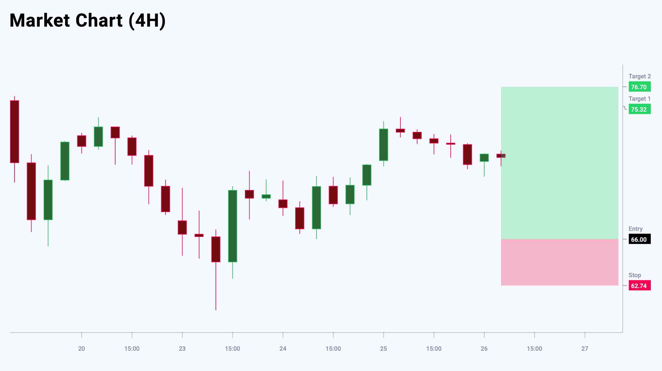 XAGUSD is trading in oversold territory, indicating a possible exhaustion of the bearish momentum and creating prerequisites for a short-term recovery. Price action analysis suggests a corrective upward move scenario. At the same time, the recovery potential remains limited. The preferred strategy is to seek buying opportunities on dips. The key support zone is located at 66.00, where demand is expected to strengthen and bullish pressure may increase. Today’s trade idea for XAGUSD suggests placing a pending Buy Limit order.