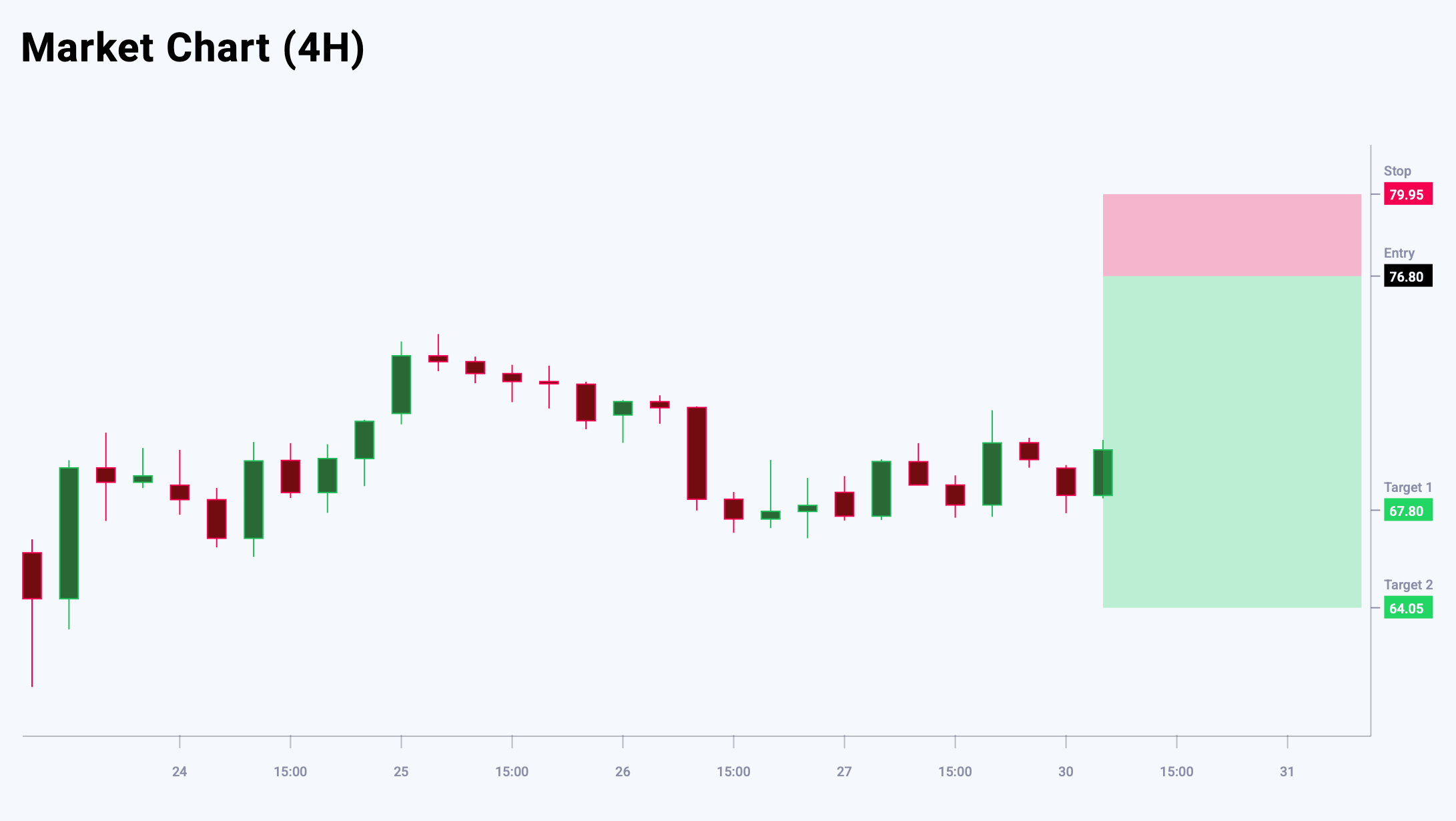 For XAGUSD, price action suggests a local bottom is forming. A reversal candlestick pattern near the support level reflects market uncertainty and a possible shift of control to buyers. In the near term, a corrective upswing is expected. Corrective dips are likely to be limited and may be used as opportunities to resume buying. The key resistance level is located at 76.80, where selling pressure may increase and the upward momentum may slow. Today’s trade idea for XAGUSD suggests placing a pending Sell Limit order.