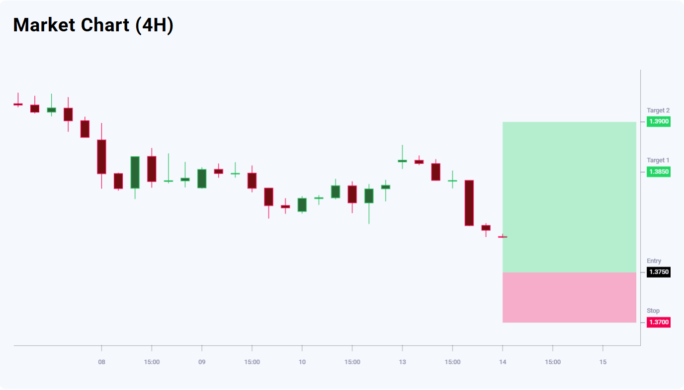 USDCAD analysis shows that the market is not giving clear signals that the uptrend is ending. Despite the likelihood of a short-term correction, the current price structure allows for a decline without disrupting the broader bullish scenario. Therefore, buying at current levels appears unattractive in terms of the risk-to-reward ratio, while a pullback towards 1.3750 provides a more comfortable entry point. In this context, the baseline scenario suggests buying on a pullback. Today’s USDCAD trade idea involves placing a pending Buy Limit order at 1.3750.