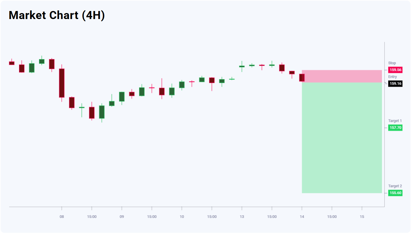 USDJPY analysis shows that the pair has been trading sideways for the past 25 days. The gap formed between 10 and 12 April has been fully closed, and a bearish Head and Shoulders pattern is taking shape. The medium-term bias remains bearish. Against this backdrop, the baseline scenario suggests selling, as there are currently no signs of short-term bullish momentum within the range. Today’s USDJPY trade idea suggests placing a pending Sell Limit order.