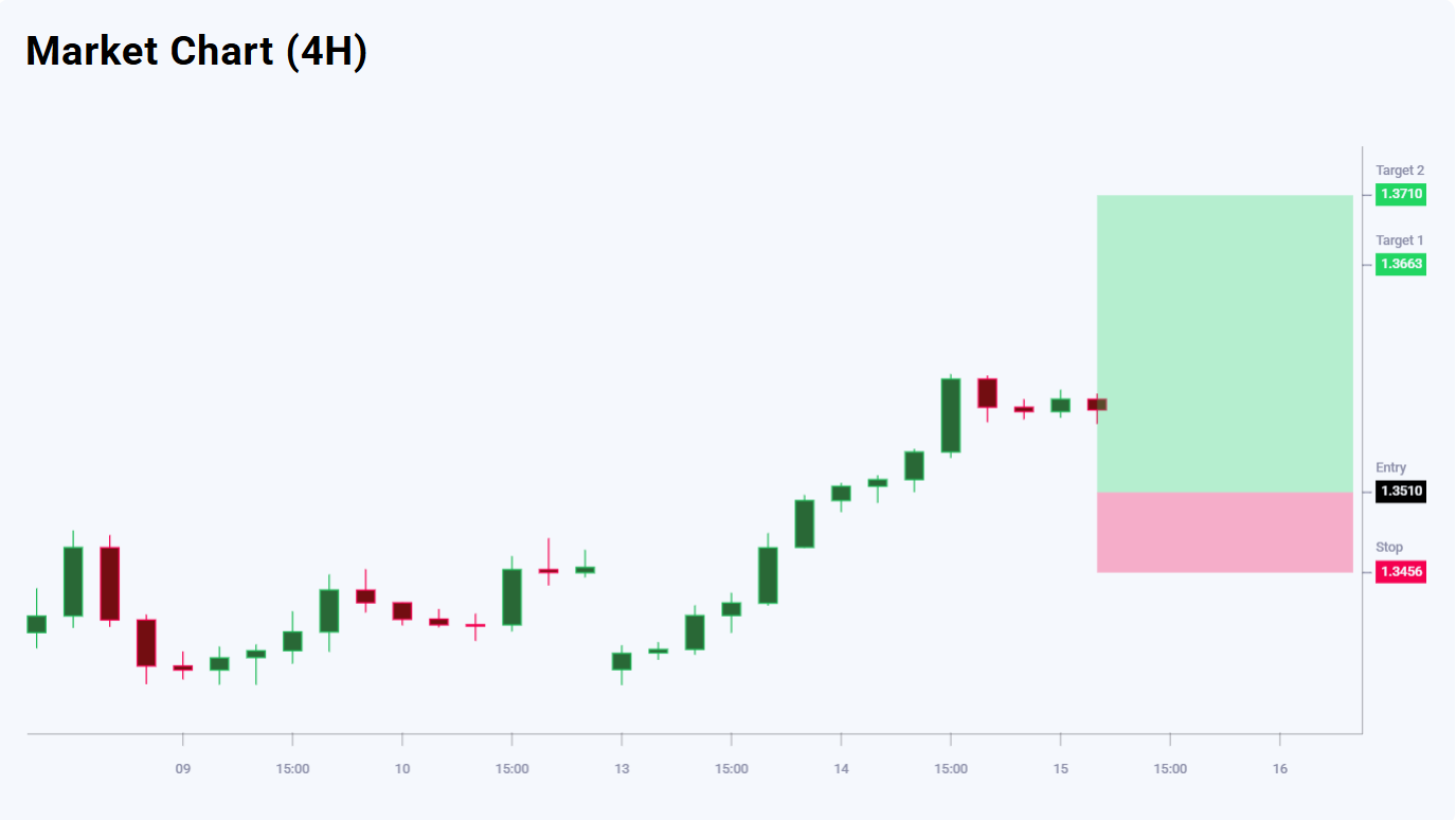 The news background is neutral-to-positive for a correction, with a slight bias in favour of sellers – 51% vs 49%, but technical overbought conditions call for caution. Given the expected correction, the trade looks attractive in terms of the risk-to-reward ratio. Placing a pending Buy Limit order at 1.3510 allows entry after the correction with limited risk. The first target at 1.3663 offers upside potential of 153 pips, and the second target at 1.3710 increases the potential profit to 200 pips. The stop-loss at 1.3456 limits the risk to 54 pips, corresponding to a risk-to-reward ratio of 1:2.8 for the first target and 1:3.7 for the second.