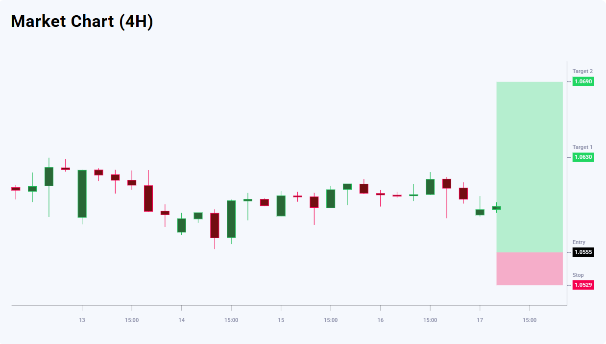 GBPCHF analysis suggests the price is likely forming a local top, so a short-term downward correction cannot be ruled out. However, the intraday chart still shows sideways consolidation, indicating hesitation among market participants and the lack of a clear directional momentum. Against this backdrop, the expected decline currently looks more like a pullback within the range than a full-fledged trend reversal. Therefore, the baseline strategy is to buy on dips if quotes fall into the 1.0555 support area. Today’s GBPCHF trade idea suggests placing a pending Buy Limit order at 1.0555.