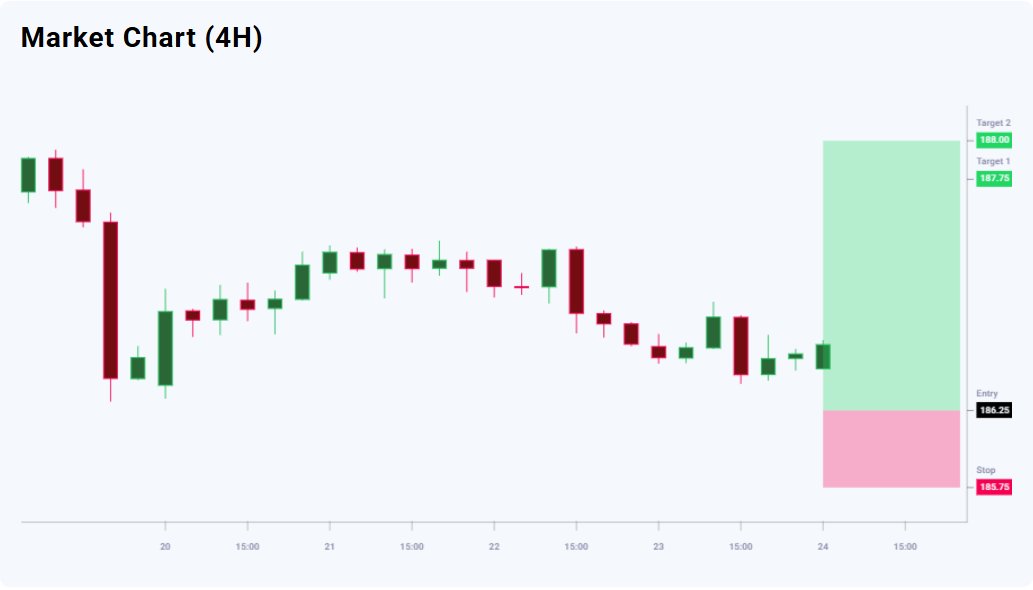 EURJPY analysis shows that the market still does not provide clear signals that the upward movement is coming to an end. Although a short-term correction is possible, the current price structure suggests a decline without disrupting the broader bullish scenario. Therefore, buying at current levels does not appear very attractive in terms of the risk-to-reward ratio, whereas a pullback towards the 186.25 area creates a more comfortable entry point. Against this backdrop, the baseline scenario suggests buying on a pullback. Today’s trade idea for EURJPY suggests placing a pending Buy Limit order at 186.25.