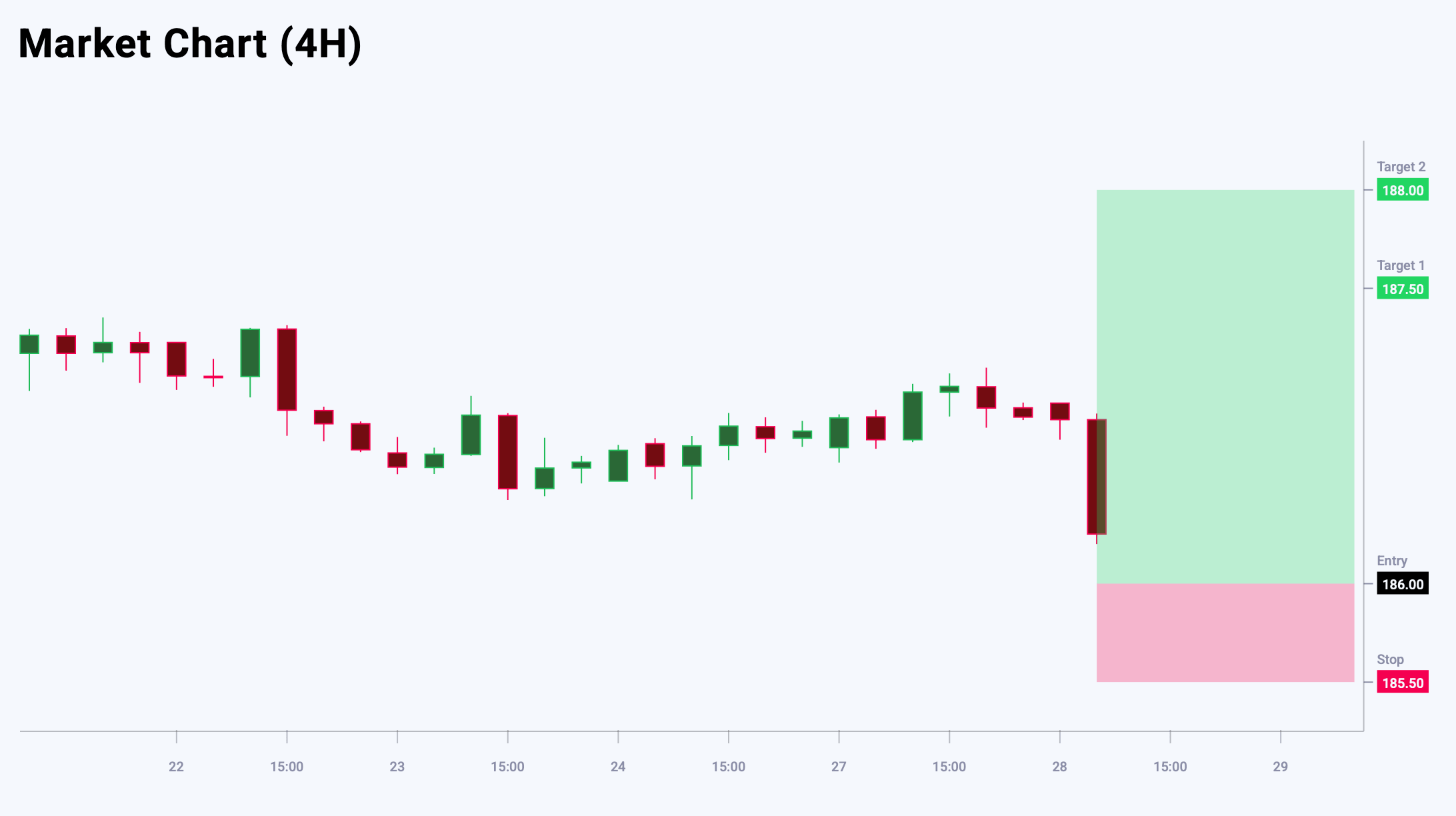 For EURJPY, there is a slight predominance of bearish expectations – 52% versus 48%. The risk-to-reward ratio is 1:4. The potential profit is 150 pips at the first take-profit target and 200 pips at the second, while possible losses are limited to 50 pips.