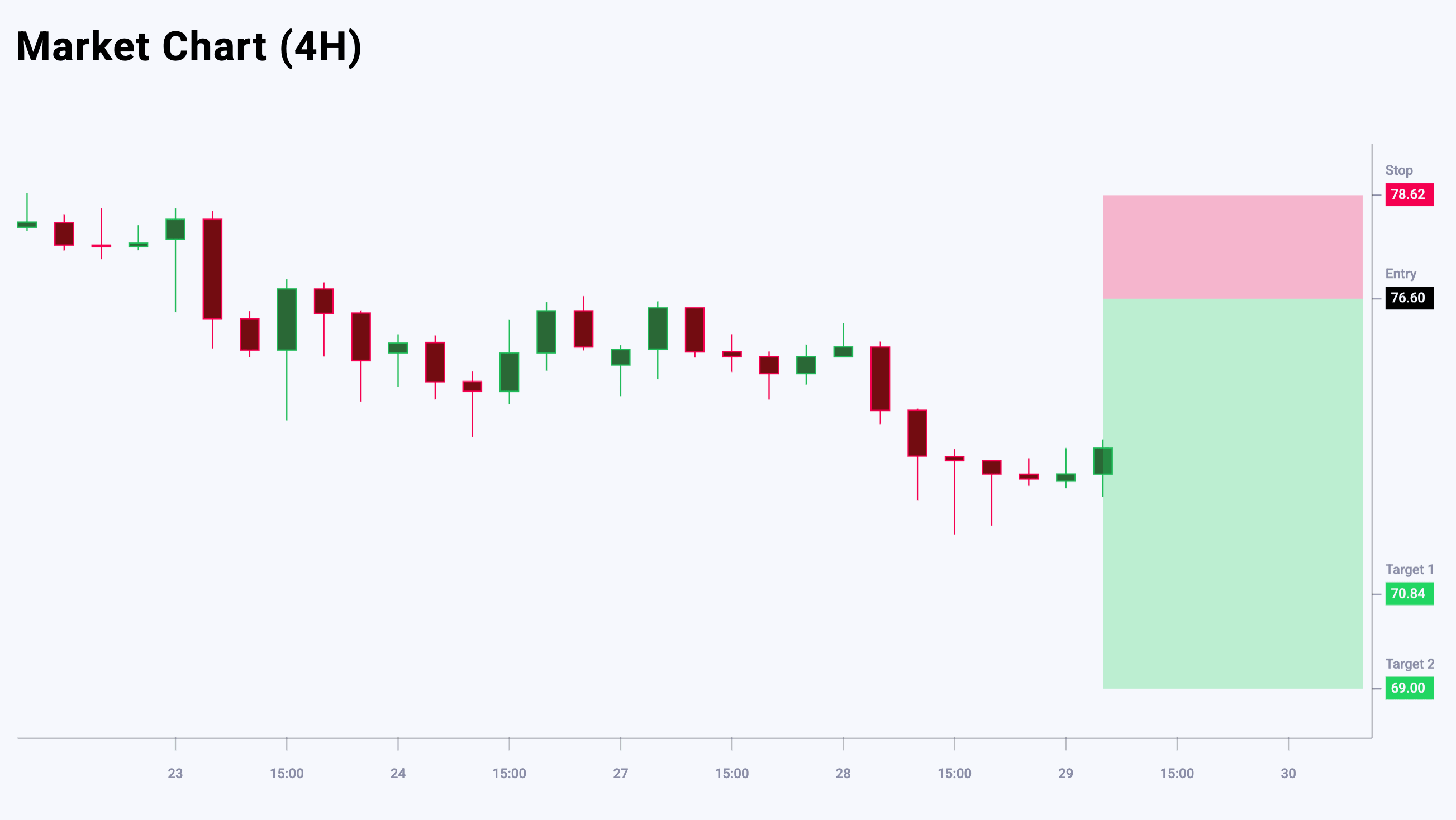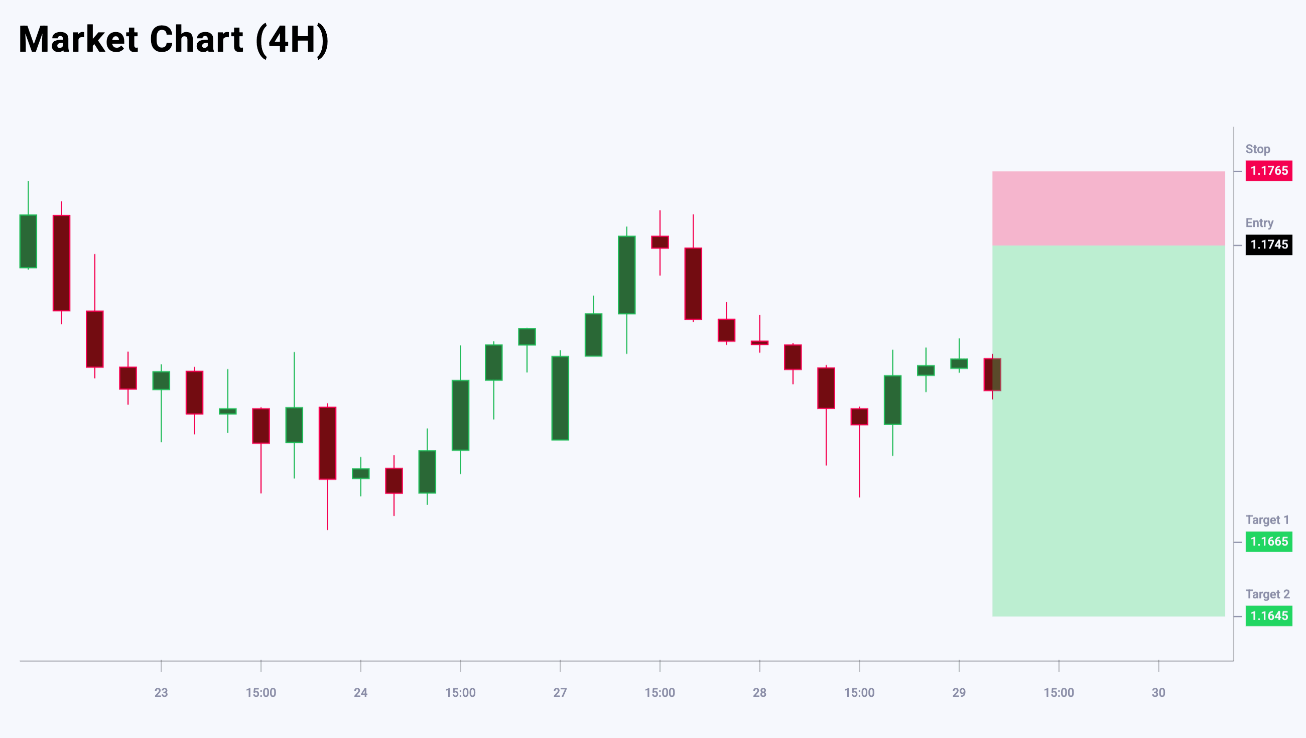 Market sentiment for EURUSD shows a bearish bias – 67% vs 33%. The risk-to-reward ratio is 1:5. The potential profit is 80 pips at the first take-profit target and 100 pips at the second, while possible losses are capped at 20 pips.