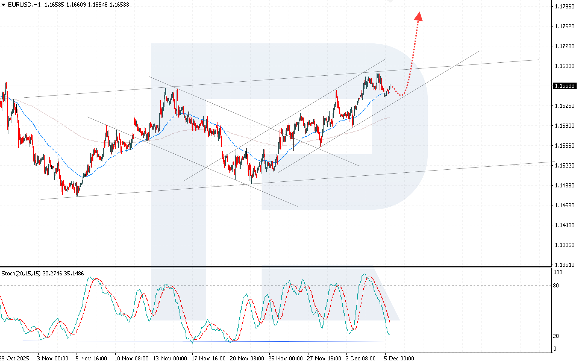 El par EURUSD comenzó el día con ganancias, fortaleciendo su impulso alcista tras romper el patrón de Triángulo. La cotización se sitúa actualmente en 1.1658. Más detalles en nuestro análisis para 5 de diciembre de 2025.