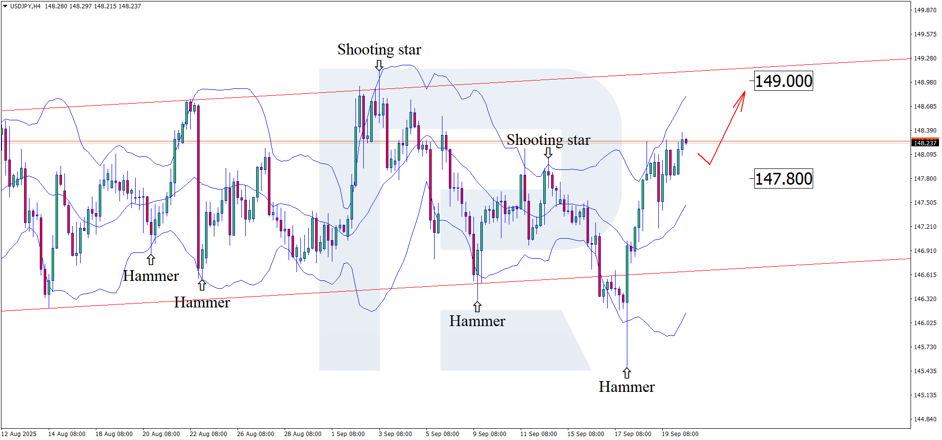 El pronóstico para el 22 de septiembre de 2025 tiene en cuenta que el par USDJPY está formando una ola alcista y cotizando cerca de 148.20.