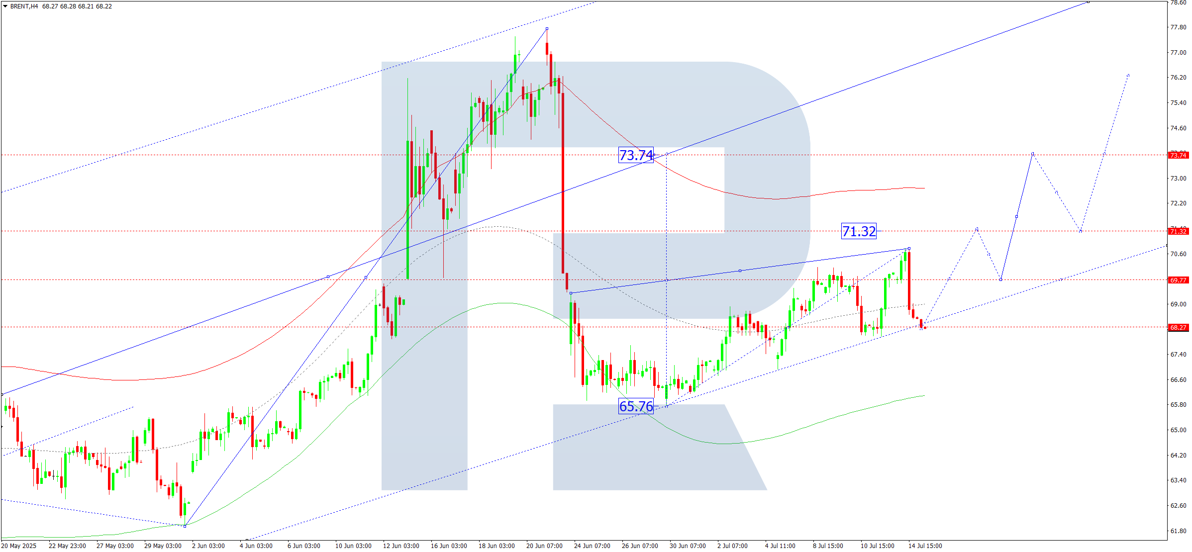 Técnicamente, este escenario está respaldado por la estructura de ondas de Elliott y la matriz de ondas de crecimiento con un centro de rotación en 70.00. Este sigue siendo clave en la estructura de ondas de Brent. Actualmente, el mercado está formando un rango de consolidación alrededor de la línea central del Price Envelope en 70.00. Es relevante considerar un ascenso hacia el límite superior en 73.73.