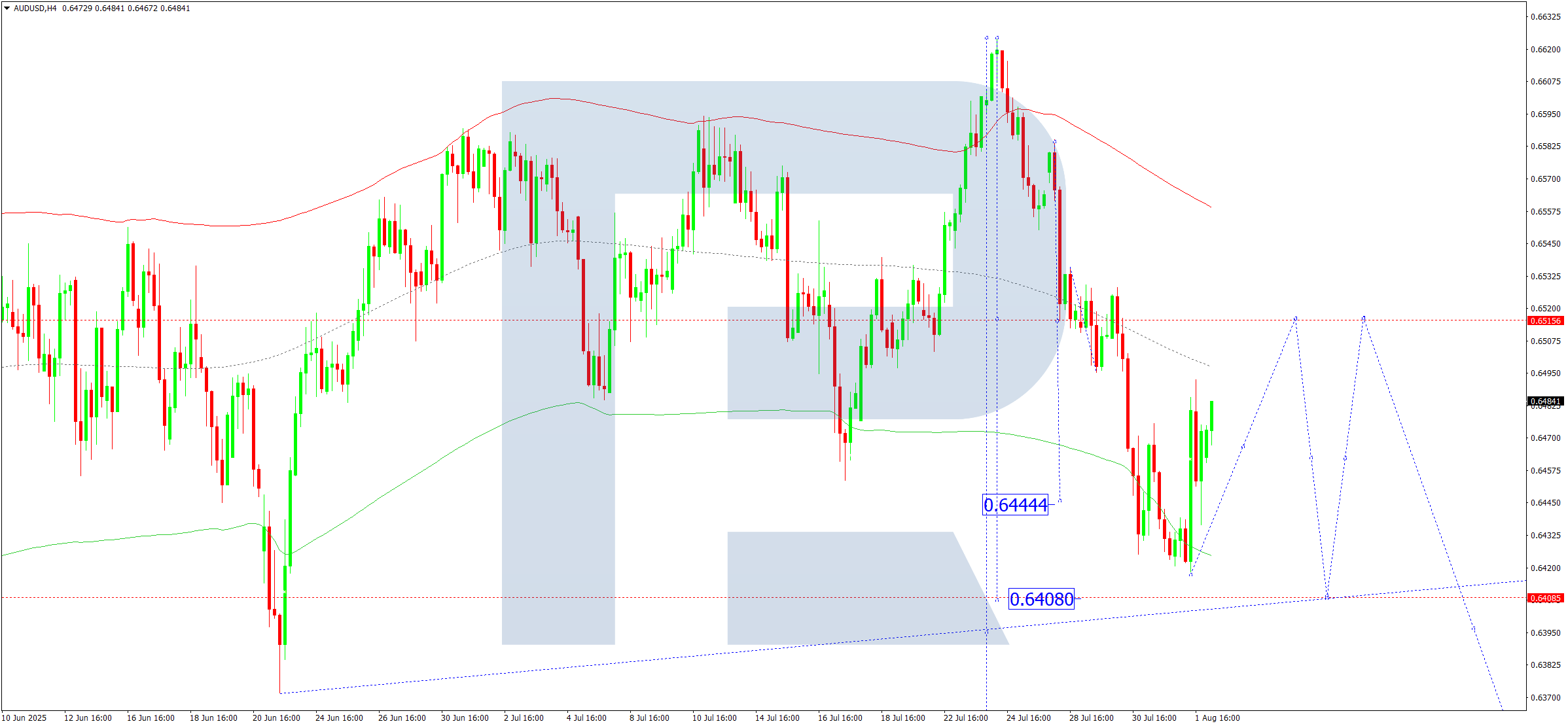 En el gráfico H4 de AUDUSD, el mercado continúa desarrollando un rango de consolidación alrededor de 0.6464. Hoy, 4 de agosto de 2025, si el precio rompe al alza, es posible una corrección hacia 0.6515. Si rompe a la baja, la onda descendente puede continuar hacia 0.6408 como primer objetivo.