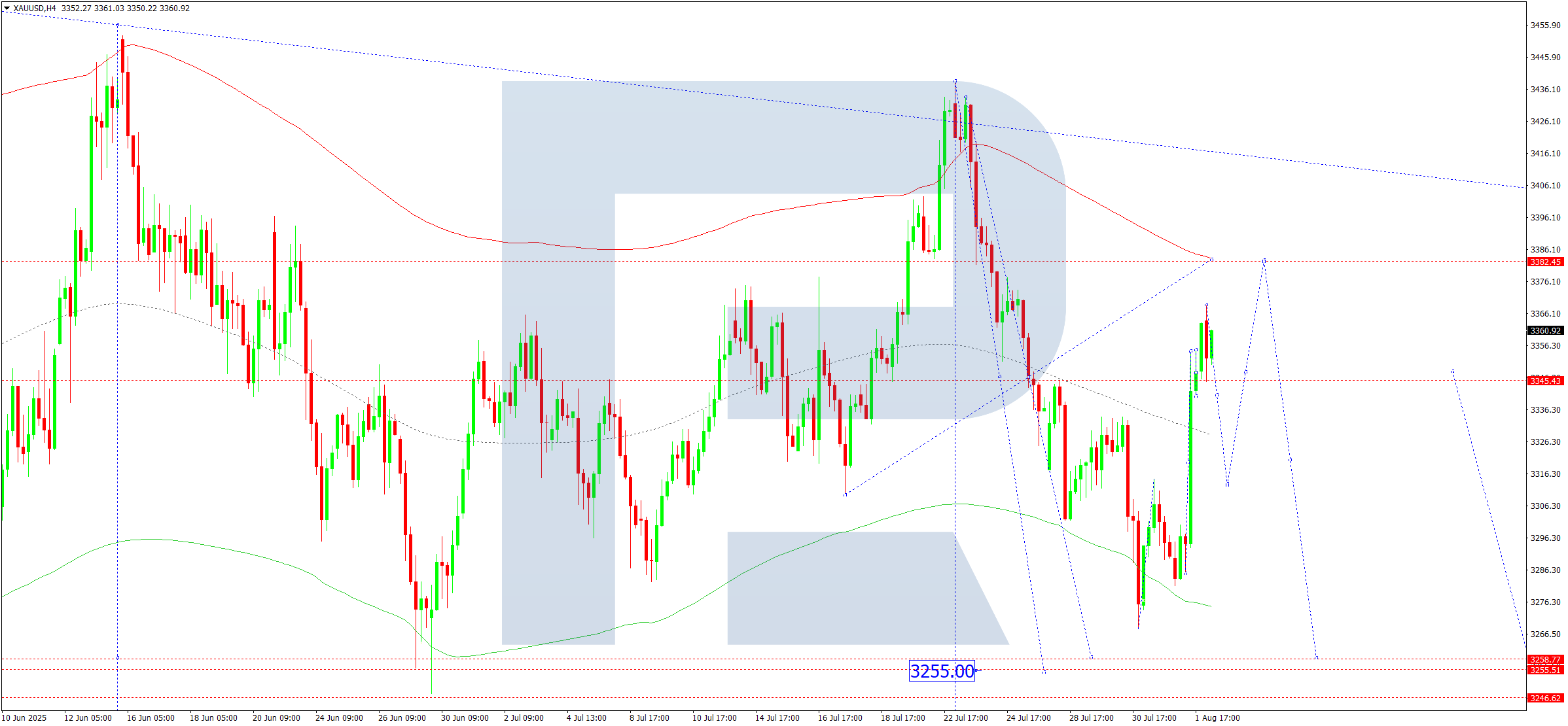 En el gráfico H4 de XAUUSD, el mercado sigue formando un rango de consolidación alrededor de 3,345. Hoy, 4 de agosto de 2025, es posible un ascenso hacia 3,382. Posteriormente, se debe considerar una caída hacia 3,255 como objetivo local.