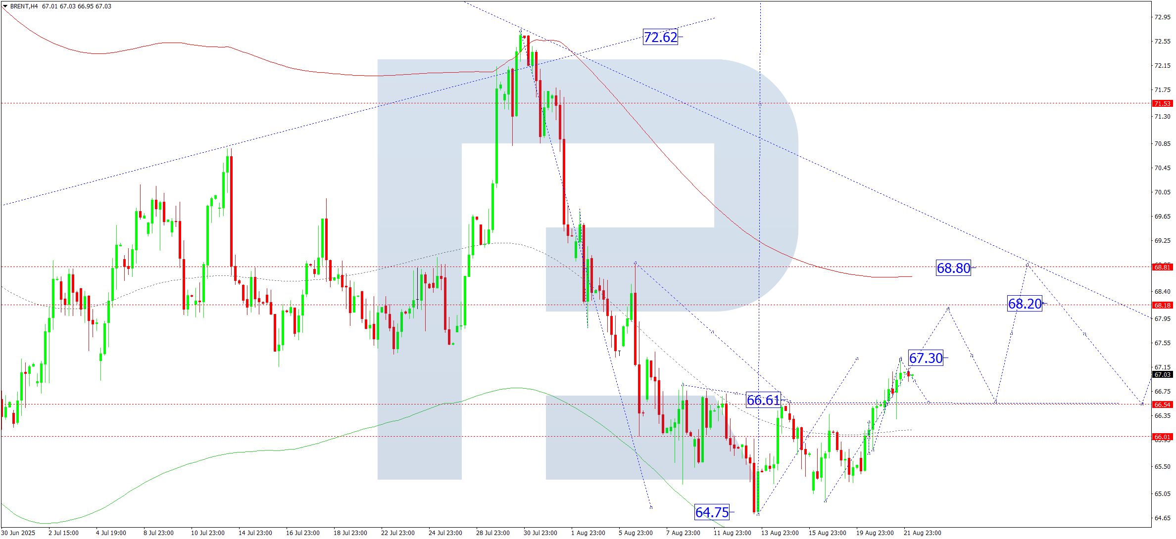 Los indicadores técnicos para la previsión del Brent de hoy sugieren una onda ascendente hacia 68.80.