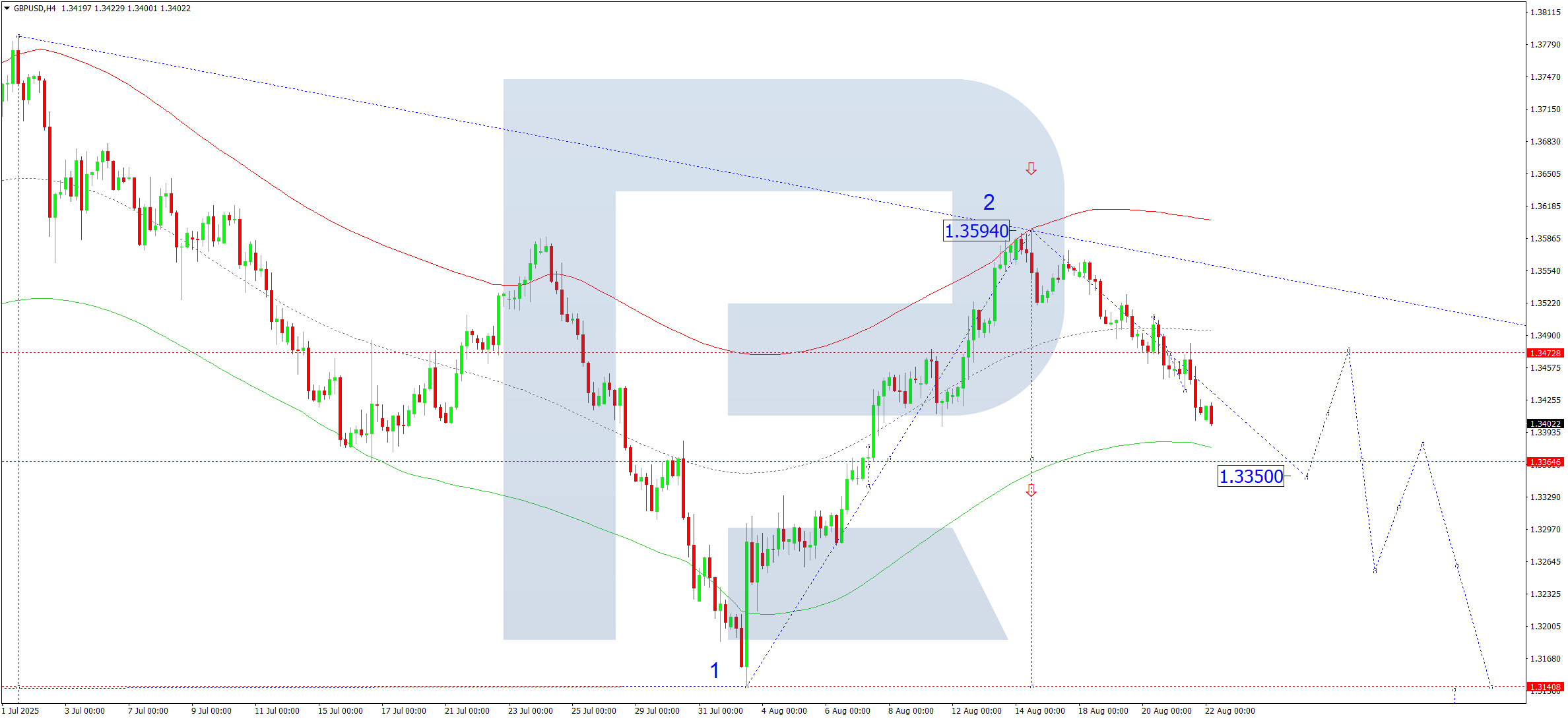 Los indicadores técnicos para la previsión de GBPUSD de hoy sugieren una onda descendente continua hacia 1.3350.