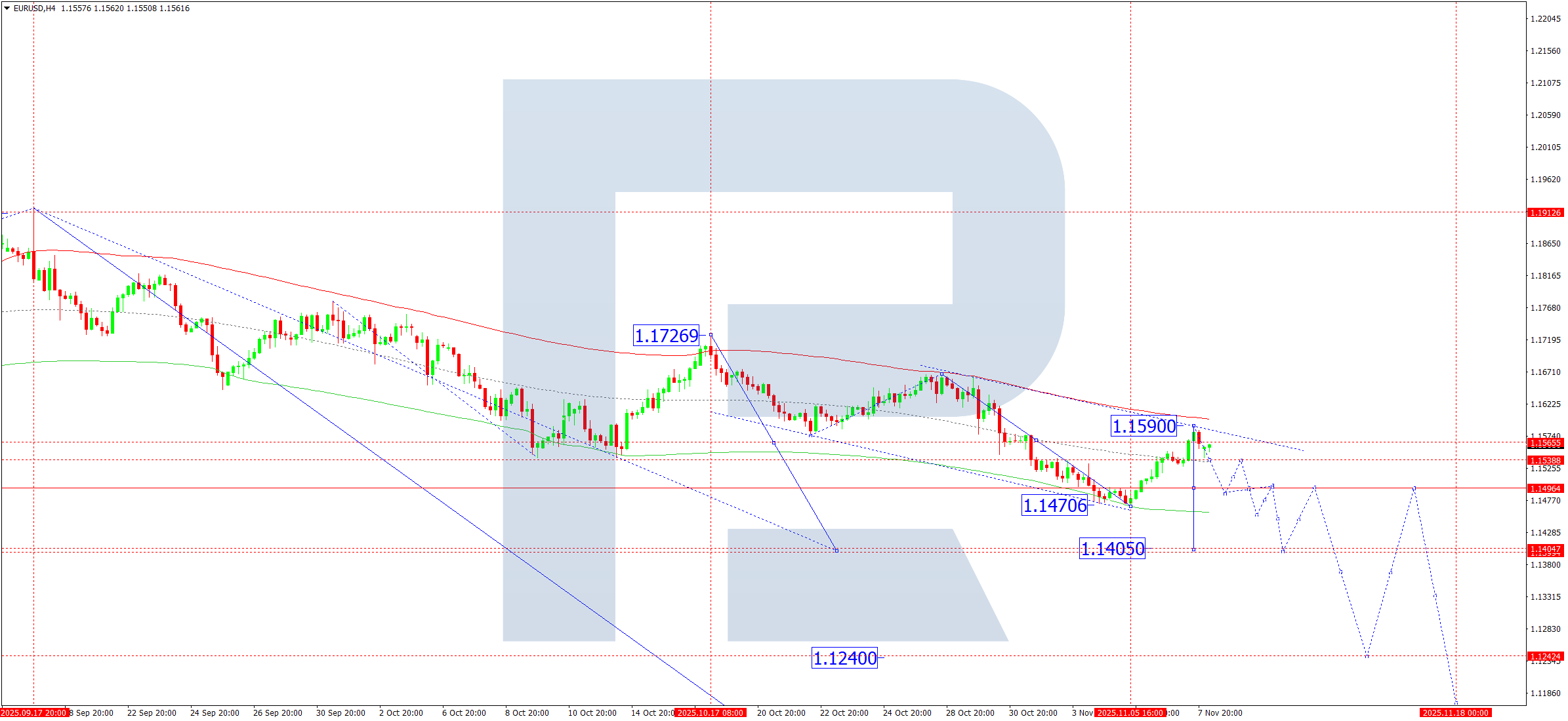 Los indicadores técnicos para el pronóstico del EURUSD de hoy sugieren una posible caída hacia 1.1450.