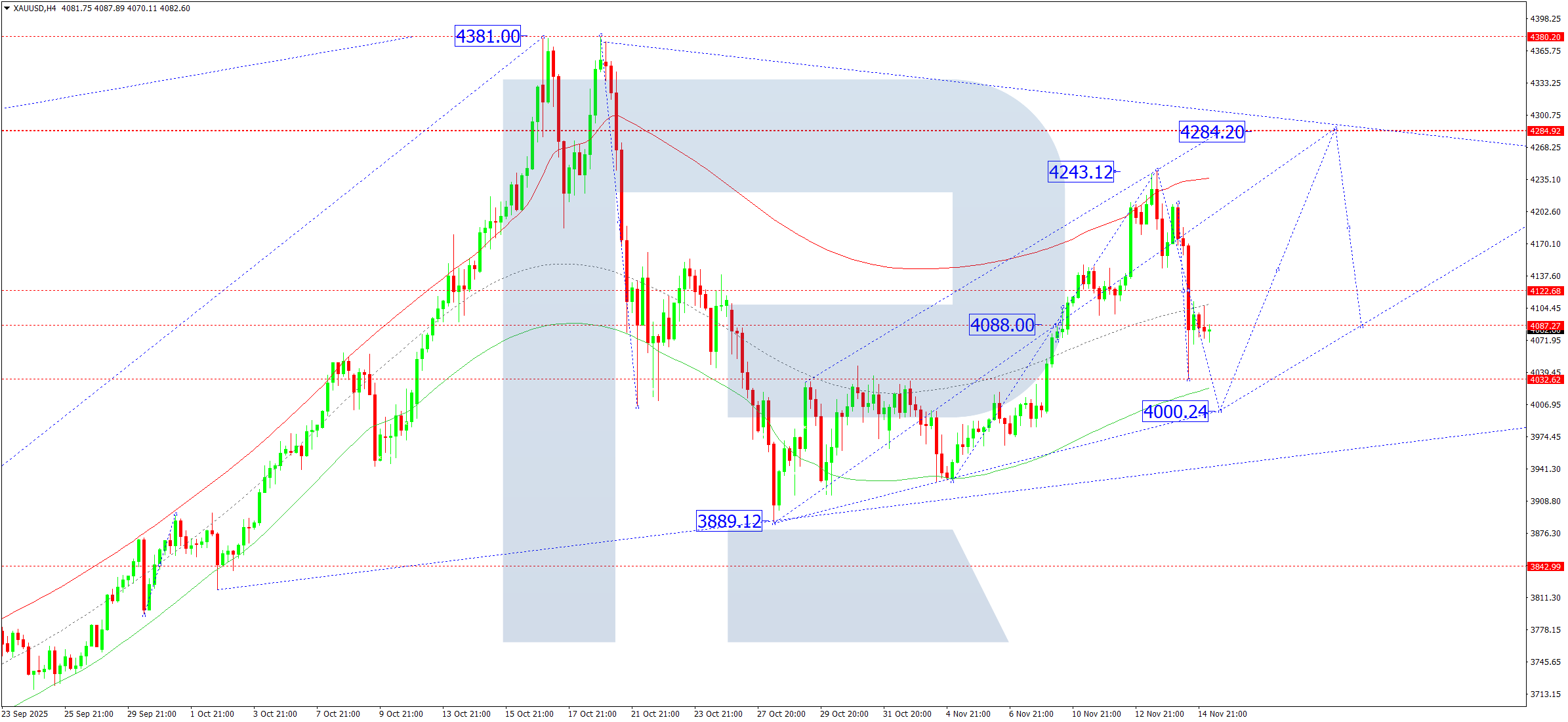 Los indicadores técnicos para el pronóstico del XAUUSD de hoy señalan una corrección hacia 4,000 y el inicio de una onda ascendente hacia 4,215 y 4,284.