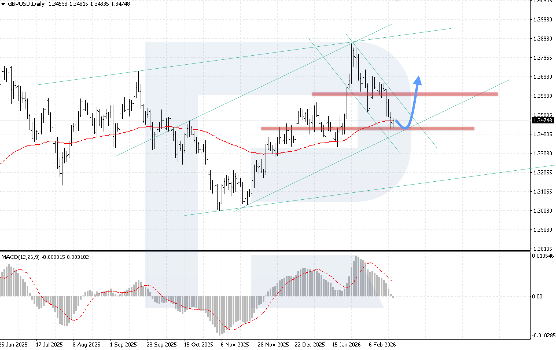 El par USDCAD cerró la semana al alza, pero los precios permanecen dentro de un canal de consolidación con un límite superior en 1.3715 y un límite inferior en 1.3495. El dólar canadiense se vio presionado por una desaceleración de la inflación interna: el IPC bajó a 2.3% en enero, mientras que el enfriamiento de la inflación de la vivienda confirma una moderación de la presión de precios y reduce la probabilidad de un nuevo endurecimiento monetario.